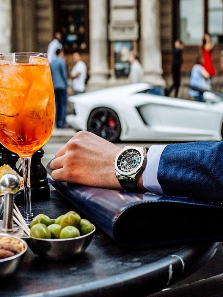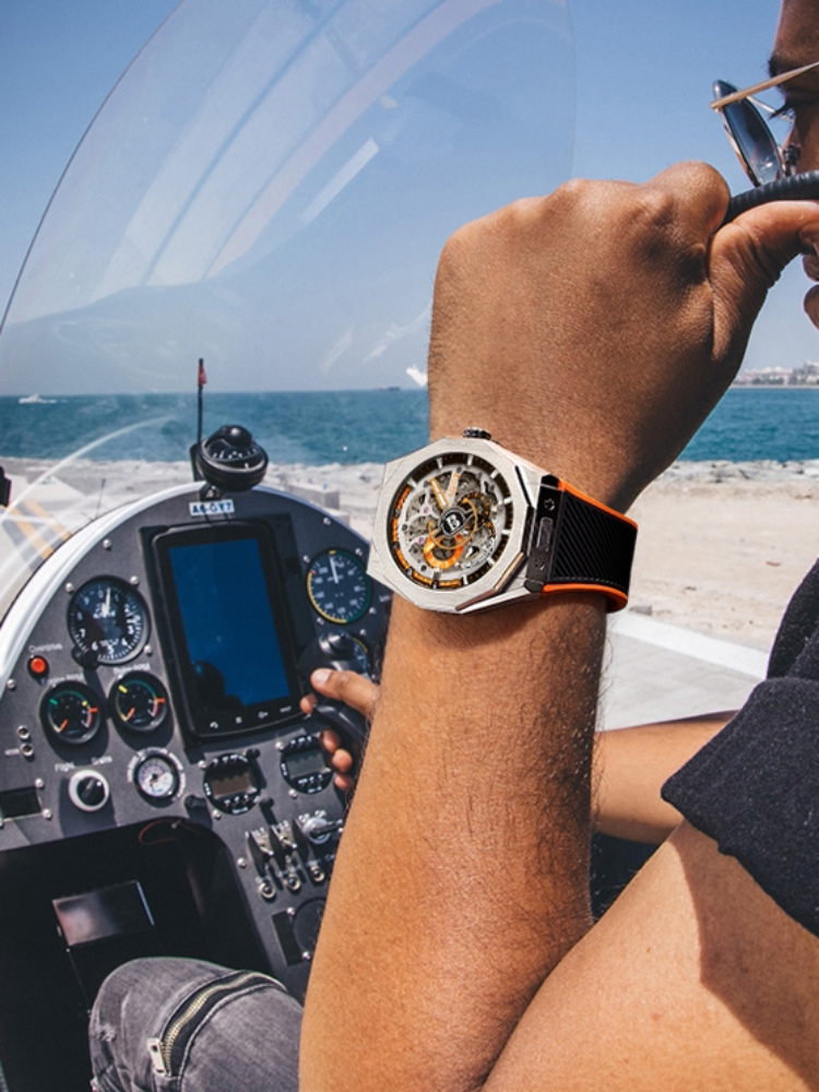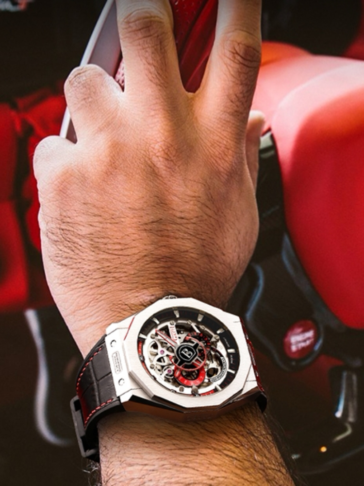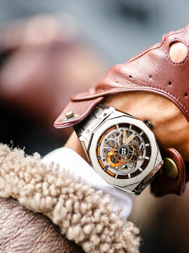 这款腕表的设计很带去时尚,而且充满了男人的霸气洒脱不羁之美,尤其是表盘的镂空设计和多样的功能体验,男人佩戴尽显阳刚之美。