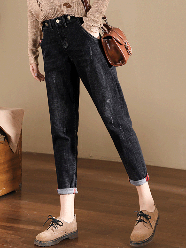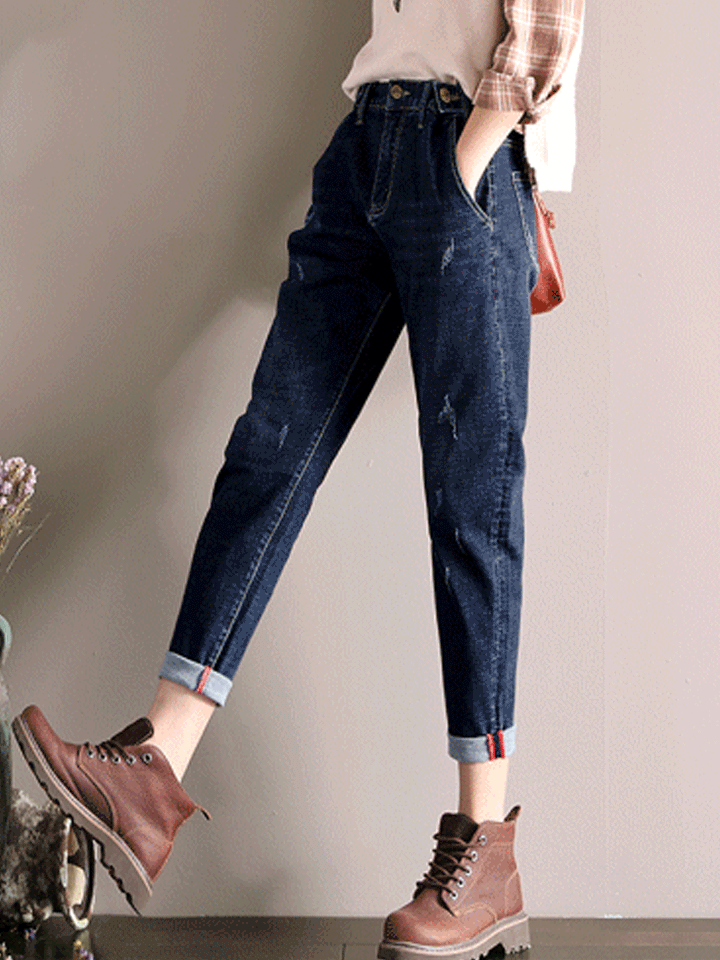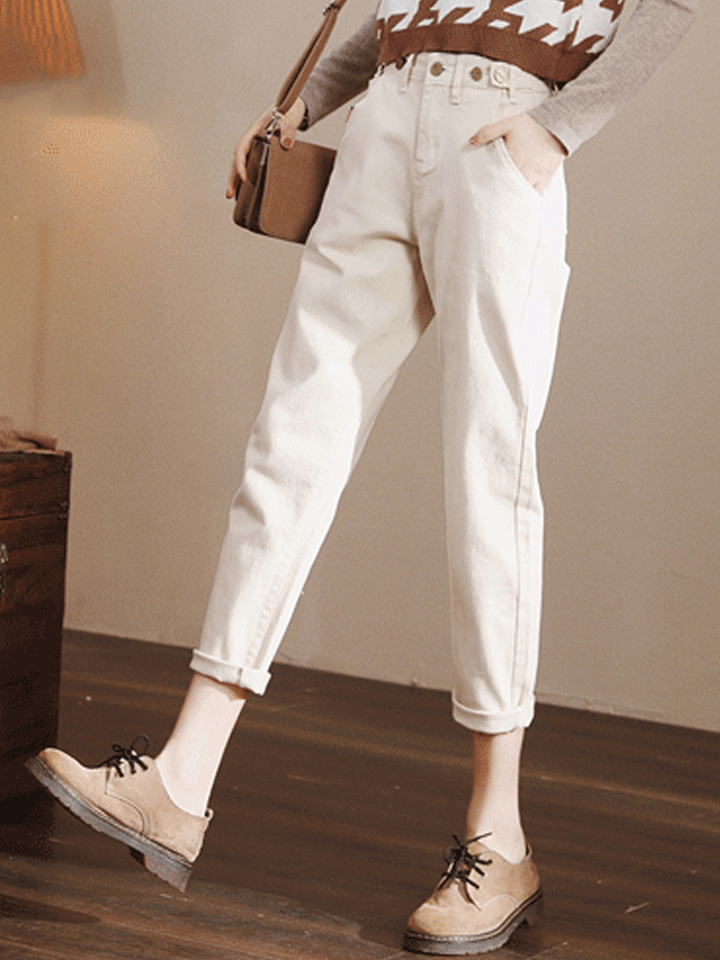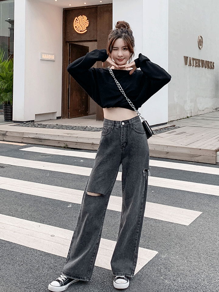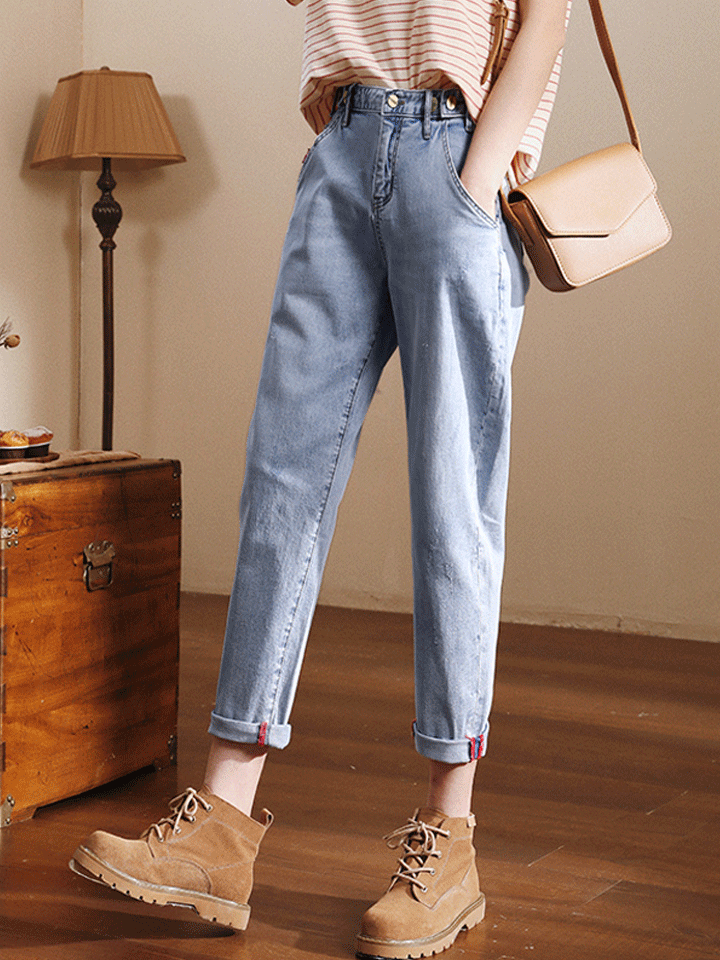 高腰牛仔裤,上身有点紧身的感觉,合身型显身材,简单的轮廓设计,能够展现修长的双腿比例,拥有大长腿不在是梦。