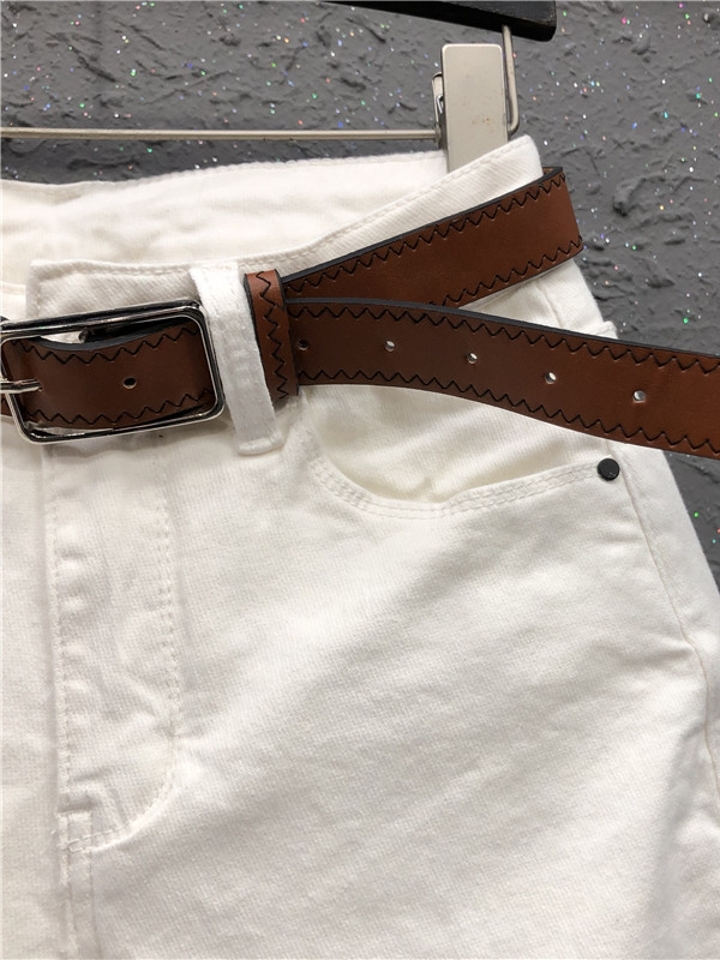 哈伦版型的牛仔裤,大腿处比较宽松,能隐藏起多余的肉肉,而下摆比较修身,凸显了迷人腿部线条,显瘦又显高挑,浅色色调的渲染,很是清新典雅,搭配风格随心变。