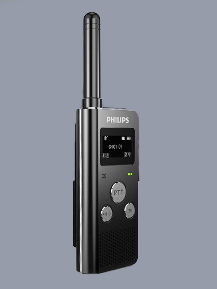 这款飞利浦对讲机炫酷的外观给人一种实用的感觉。独特的单手拿握设计搭配上颜色的衬托,用料的实在与对讲机的性能相匹配。舒适的手感给人一种不一样的感受。
