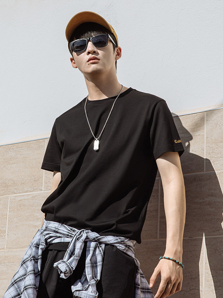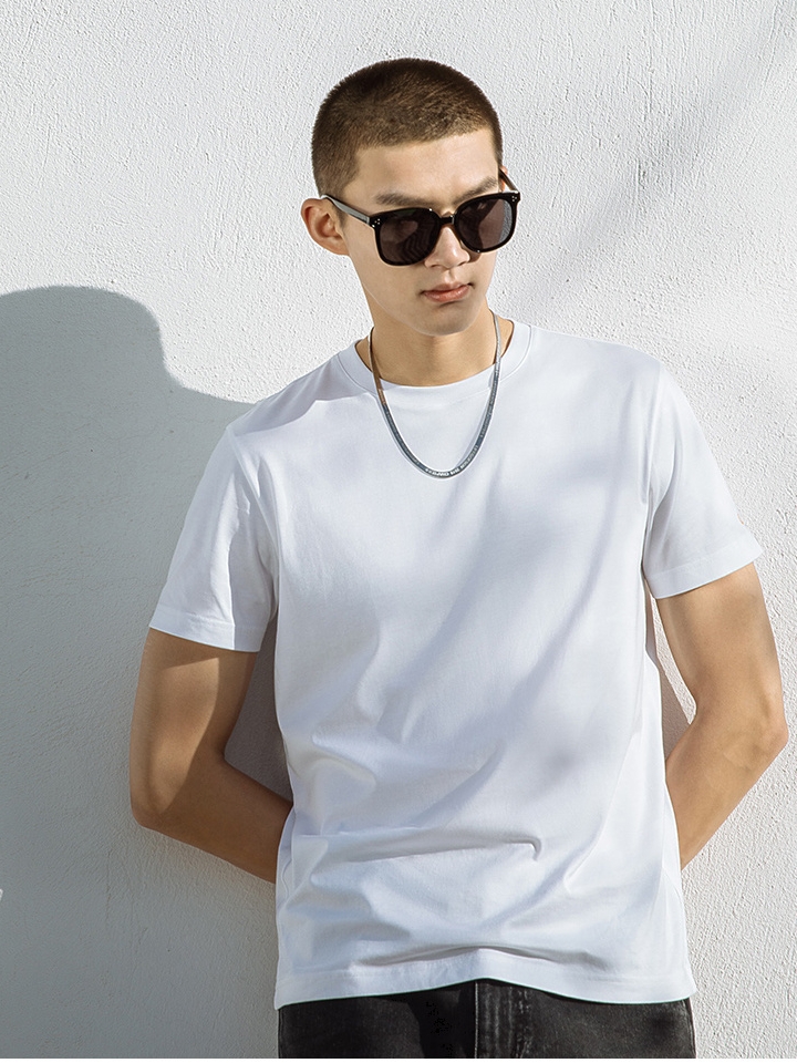 这款男士短袖100%优质透气棉,柔软舒适,透气性好,小圆领弧度适中,防风保暖,采用符合人体工程学的修身版型,潮流帅气。