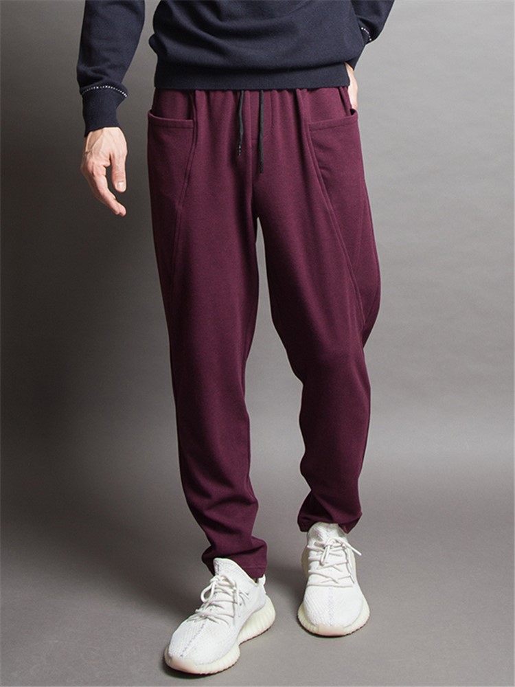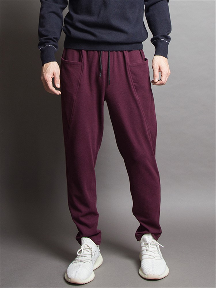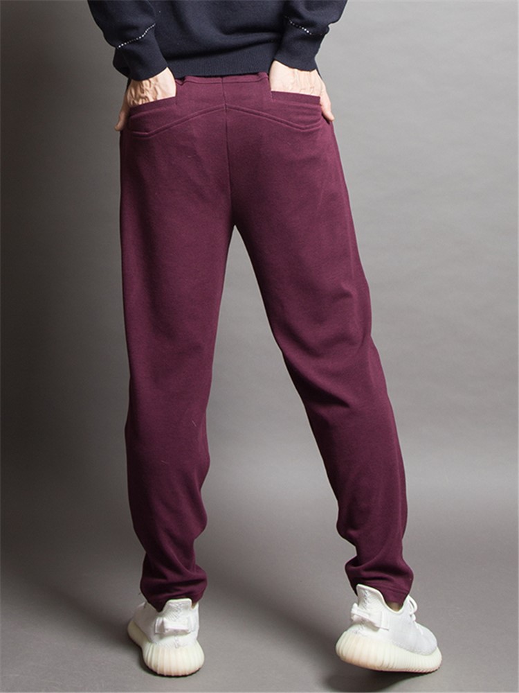 酒红色调,彰显优雅气质,卫裤版型,修饰腿部线条,裤脚设计,修饰腿部线条,宽松版型,穿着舒适自在,运动版型,穿着舒适自在,宽松裤身,修饰腿部线条。