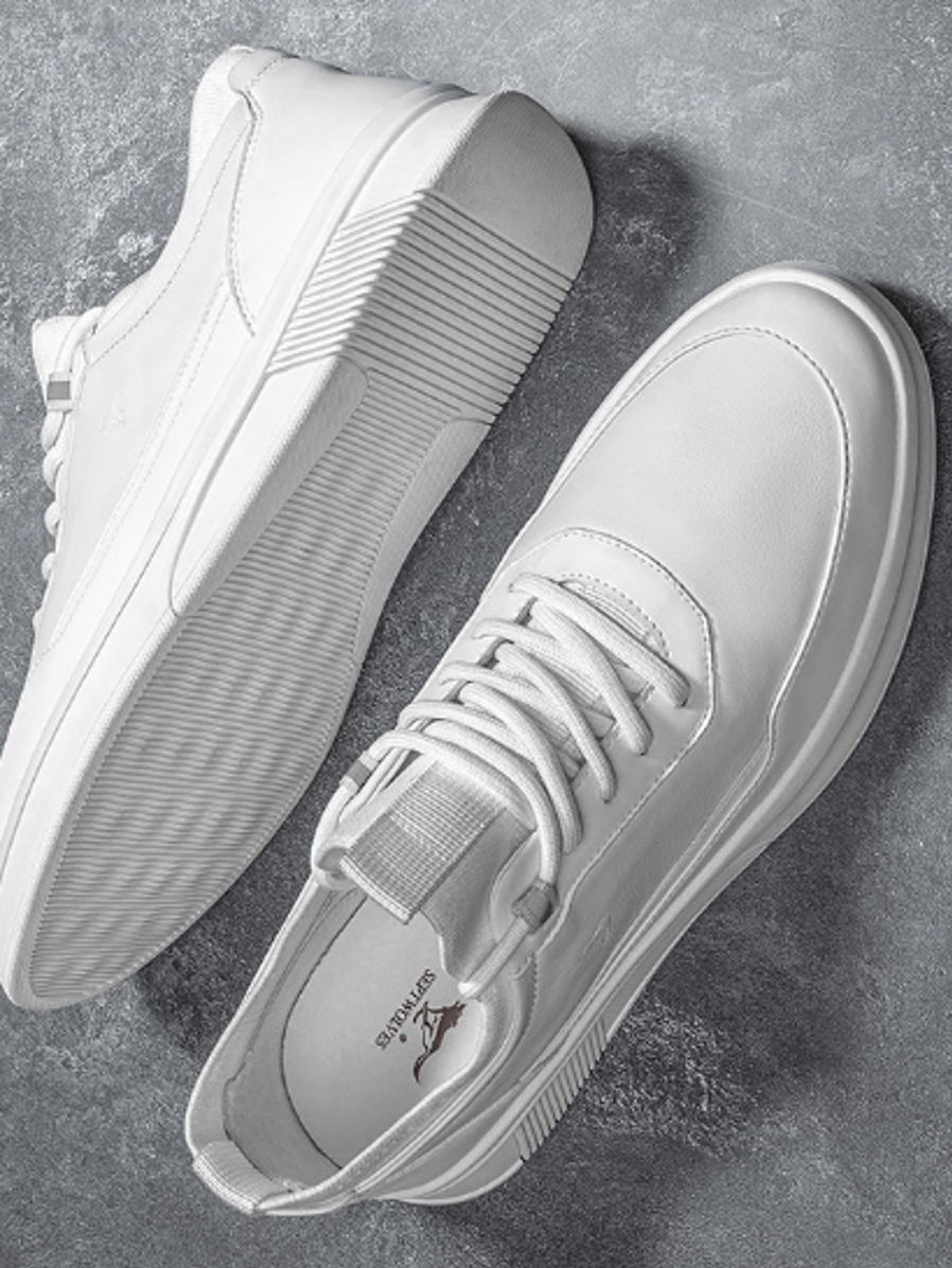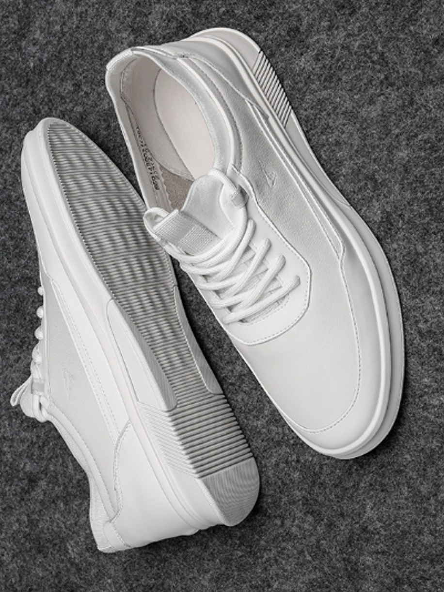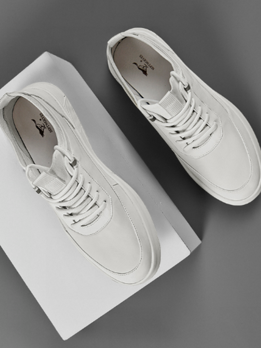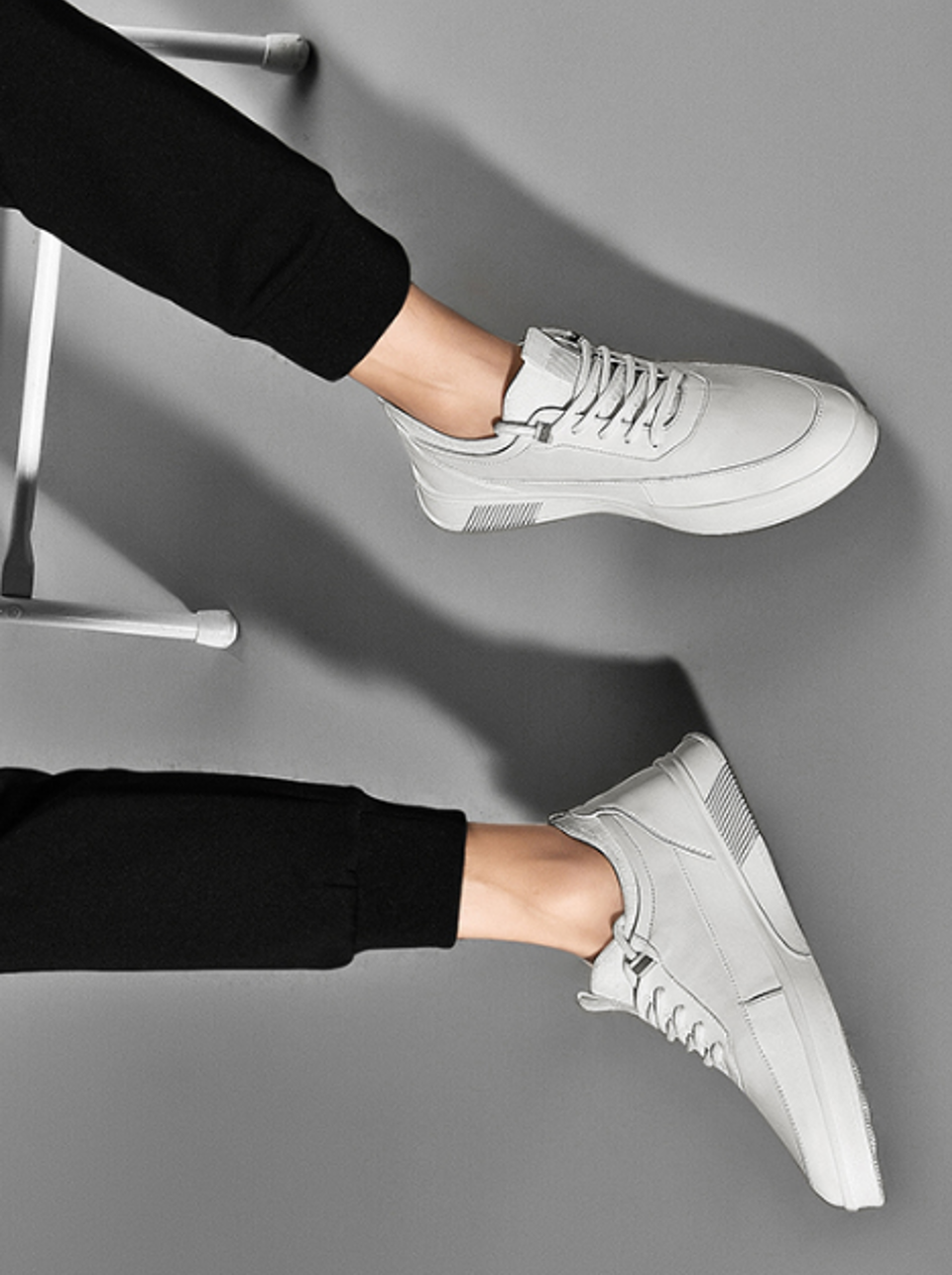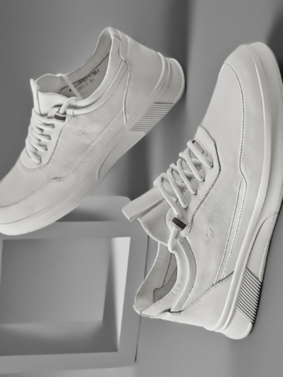 纯色的鞋子上面有同色系品牌标志,轻松唤起潮流风尚。圆形鞋头配上车缝线,实用与时尚融为一体。