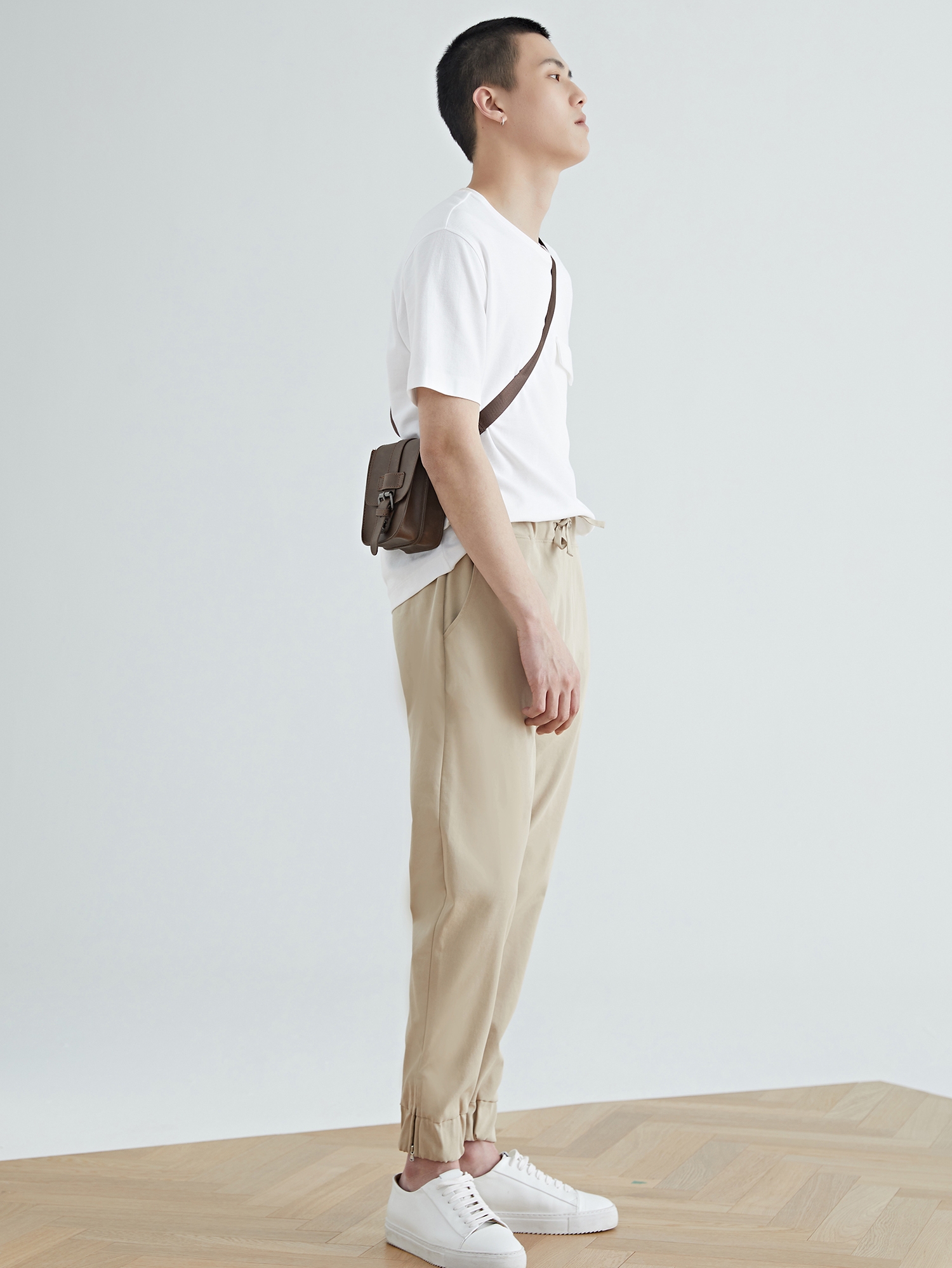 九分裤版型让整体简约的风格显得不再单调,拉伸腿部线条的同时更是凸显出一份文艺风情的淡雅与帅气。腰部抽绳松紧腰,也方便了日常穿脱。