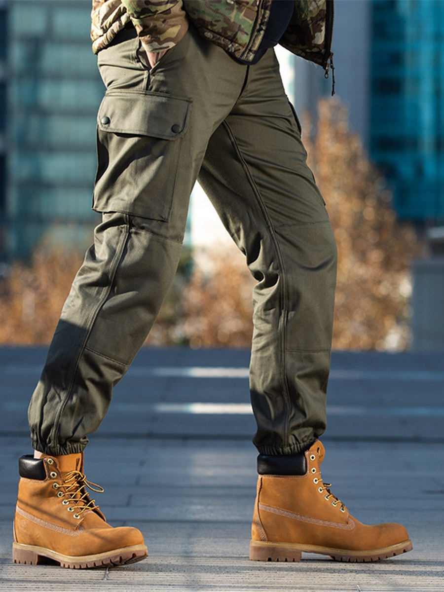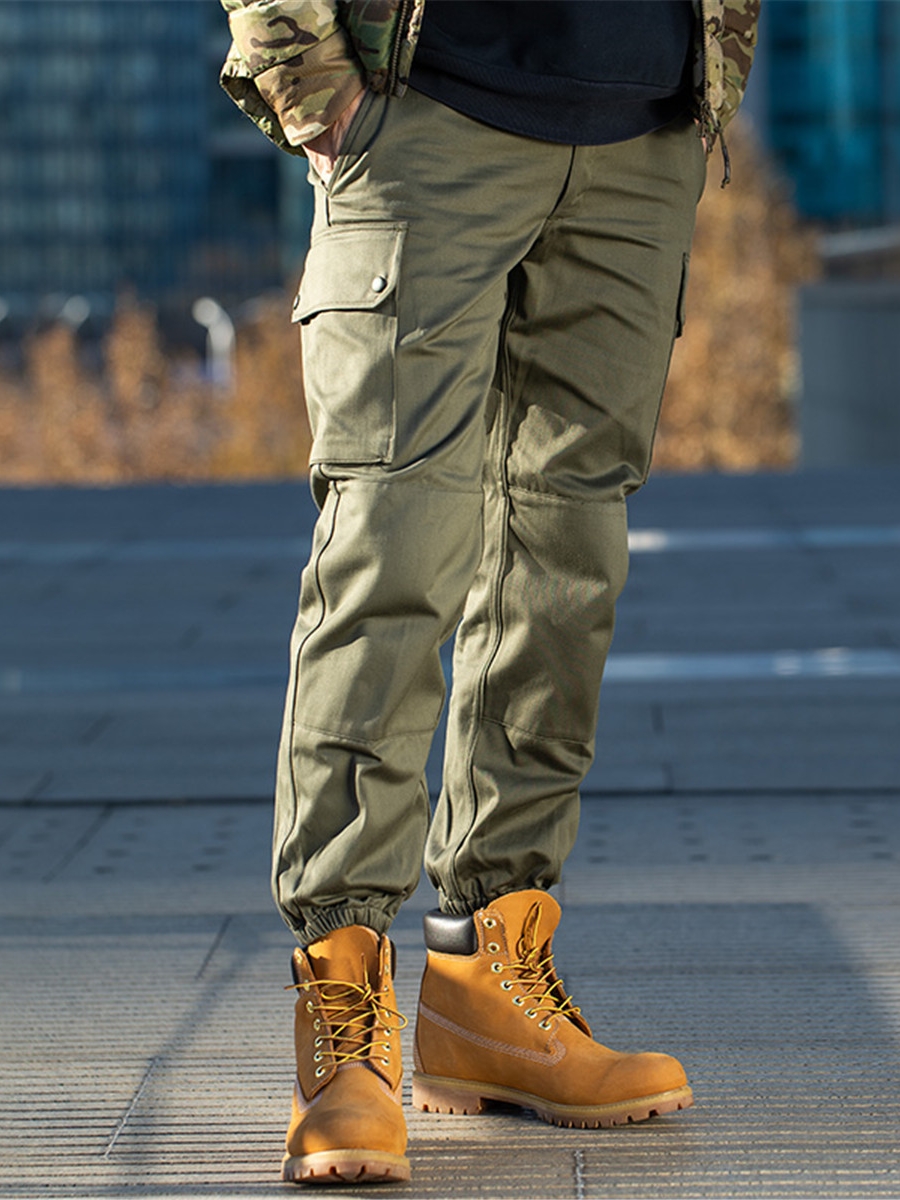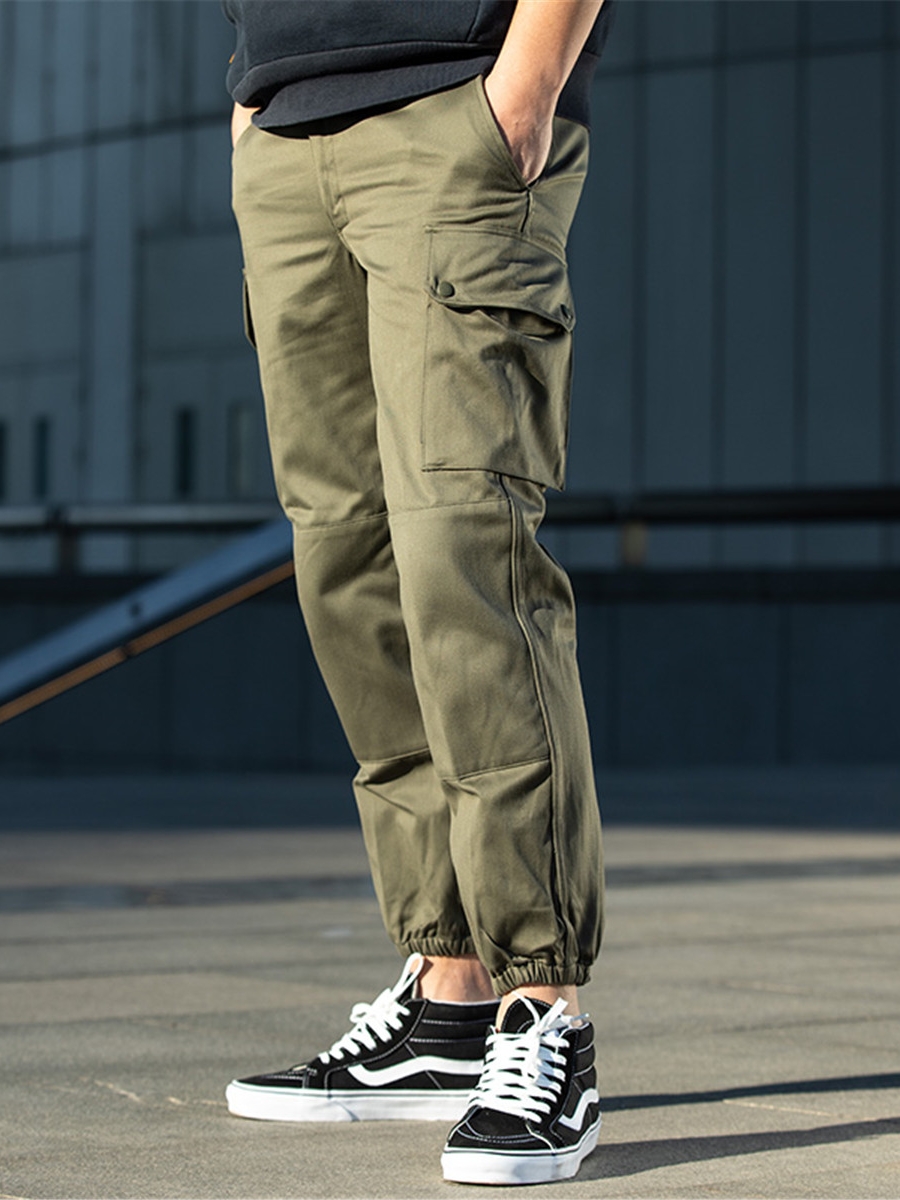 这款男士九分裤采用环保的锦棉料制作,接触肌肤十分柔和。立体裁剪直筒版型,结合简约利落的束脚设计上身挺阔有型。军绿色版面作有多口袋装饰,凸显休闲工装风气质。松紧腰头做工细致,舒适穿搭不挑身型。