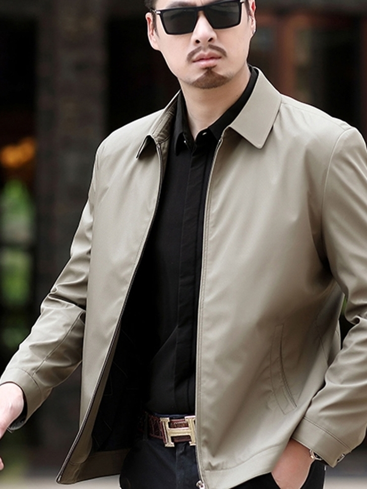 中老年人男士春秋装薄款系扣夹克衫上衣翻领大码休闲外套爸爸装外套春秋装夏薄款翻领中老年男夹克衫 宽松版型 不怕啤酒肚 优质面料 不怕起皱