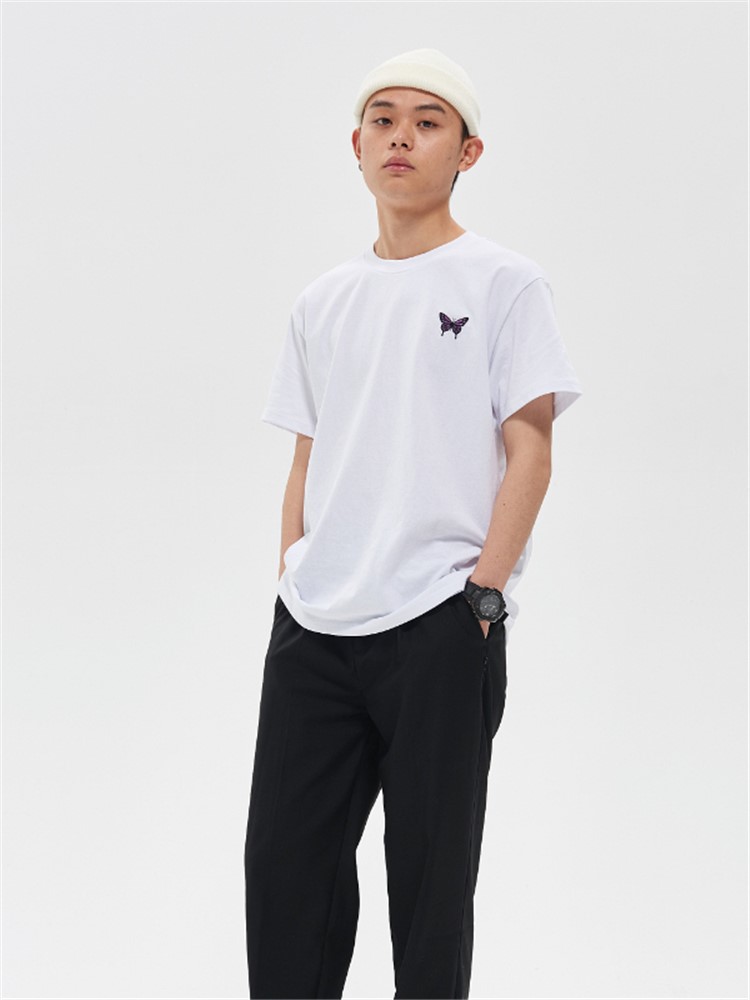 胸前蝴蝶印花,俏皮可爱,宽松T恤,让你轻松驾驭,宽松T恤,穿着舒适自在,短袖设计,修饰手臂线条。