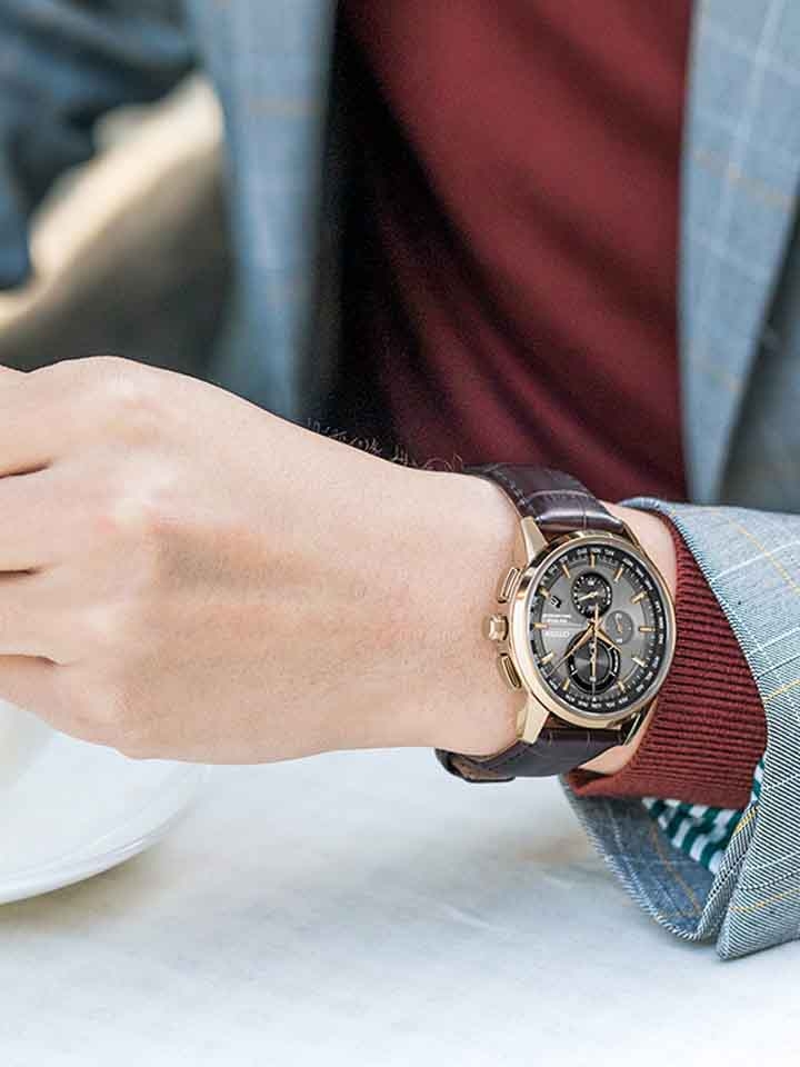 光动能是西铁城核心技术,利用任何可见光源为手表充电,电池设计寿命15-20年,佩戴安心便捷。