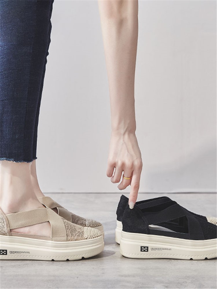系带设计,尽显仙女气质,三种颜色,满足不同喜好,平底鞋,穿着舒适不累脚,渔夫鞋款式,休闲感十足,单鞋设计,穿脱更加方便,厚底设计,增高显瘦显高,凉爽透气,夏季穿着舒适。