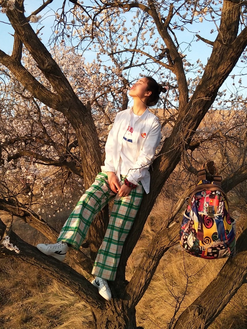 潮流有范儿的T恤,打造出非凡的气质。建议下身搭配一件格子裤子,营造出几分邻家女孩的气息。脚下搭配一双板鞋,穿着更加的随心。