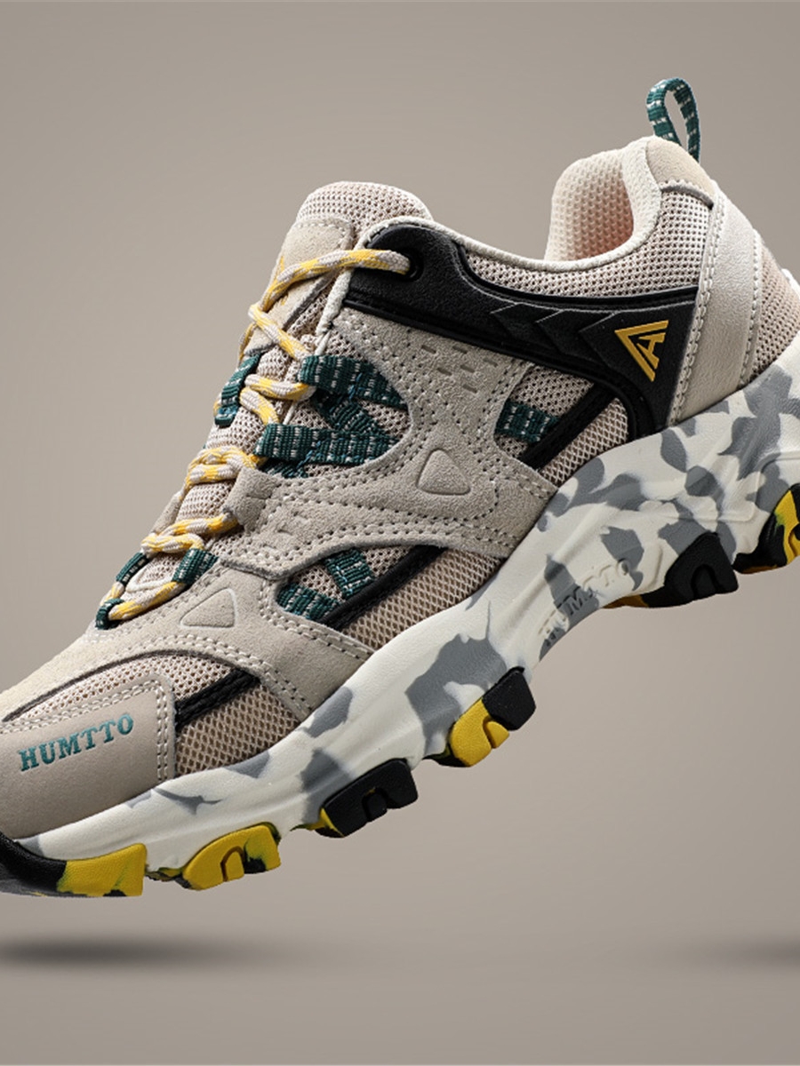 超纤辅料,韧性高,耐磨,耐老化,透气,圆形小孔使得鞋内空气流通循环,保证脚部的干爽舒适。结合反绒皮面整只鞋降低了重量 ,让你灵活自如。防滑抓地橡胶底,不容易藏污纳垢。