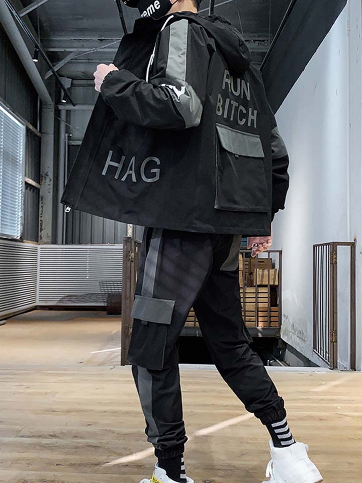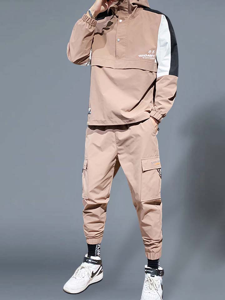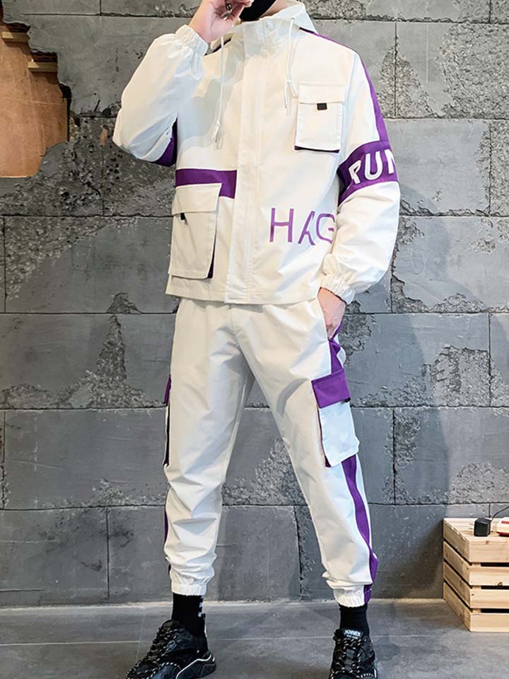 一款舒适的夹克套装,休闲运动时刻皆可以完美的驾驭。运动风的连帽设计加上潮流感的撞色渲染,让男士尽显时尚风范,整体撞色系的基调打造,穿出了比较个性一面。