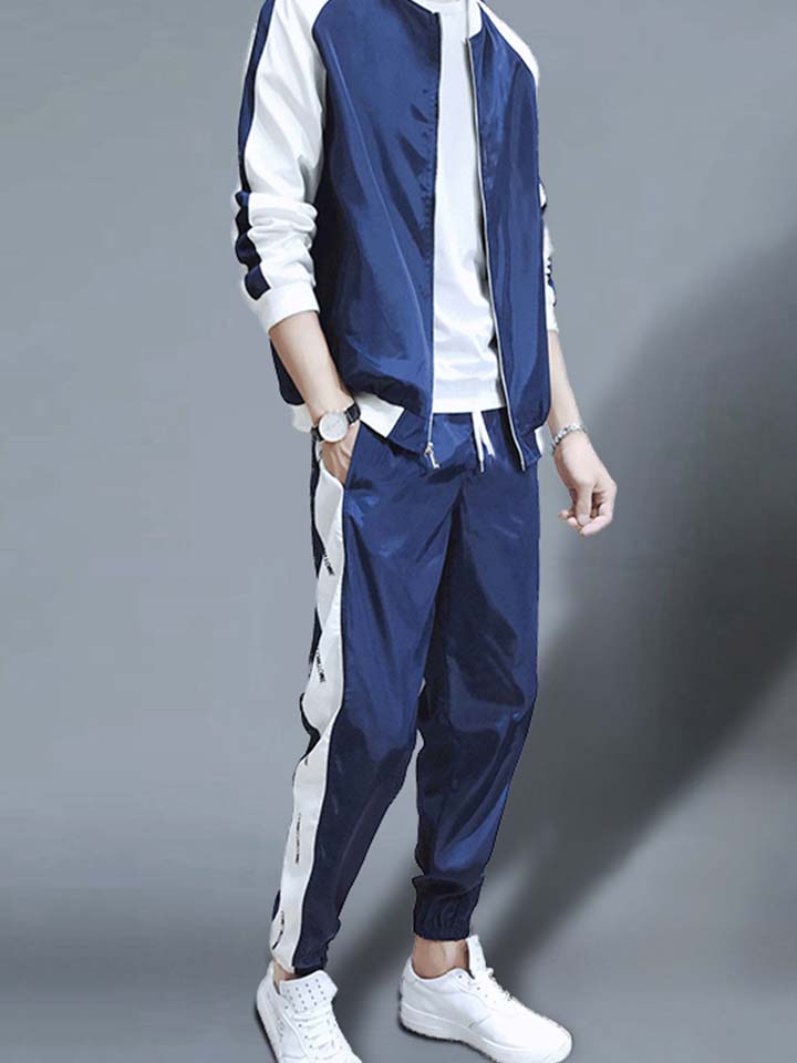 这款运动休闲套装,大方的修身版型,弹性好,简约设计不简单,整体以一个拼接撞色夹克版型打造,可以展现着男士比较干练霸气一面。