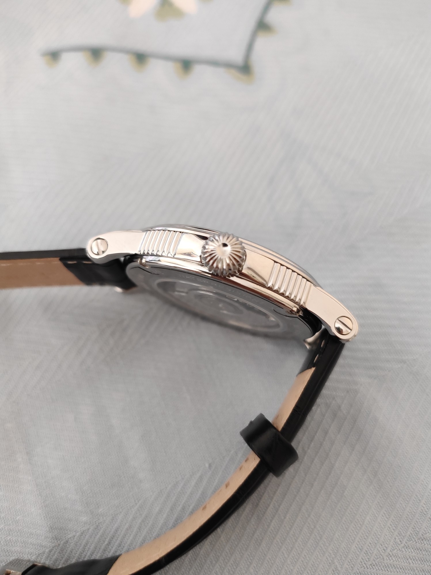 散发敞亮柔和的光泽感,透底的表背,装载着瑞士原装机芯,可以轻易观赏到宝石与游丝的自由摆动。