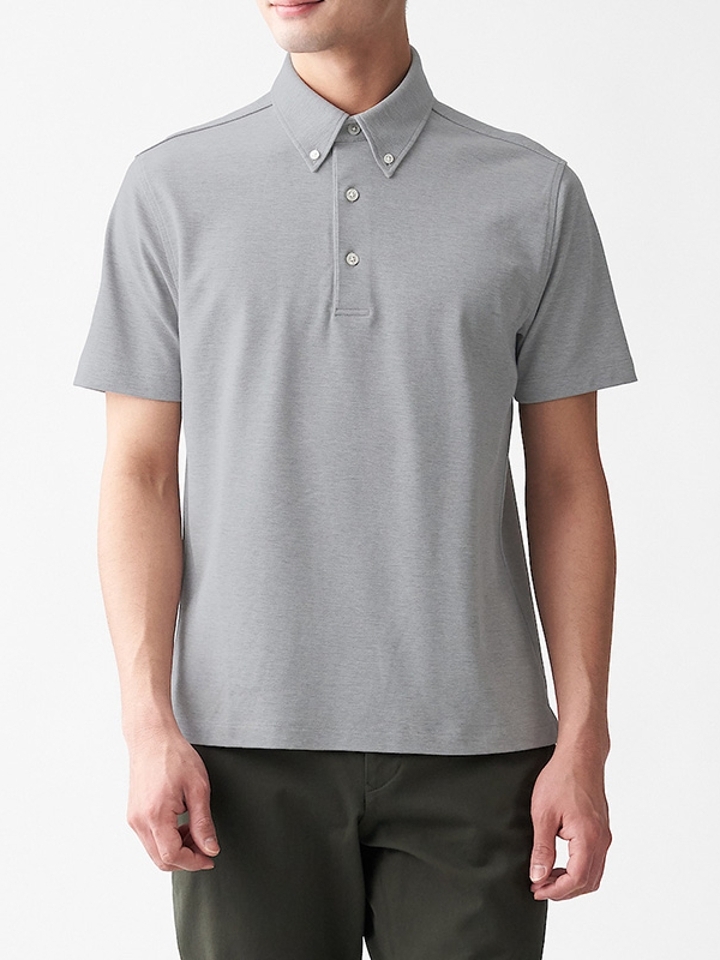 经典的polo衫版型,半开门襟的纽扣造型,做工更加考究复杂,要求更高,特别定制的珠地网眼面料,加入了独特的吸湿排汗纱线,非常的清爽透气,排汗效果非常优秀,适合夏天穿着。