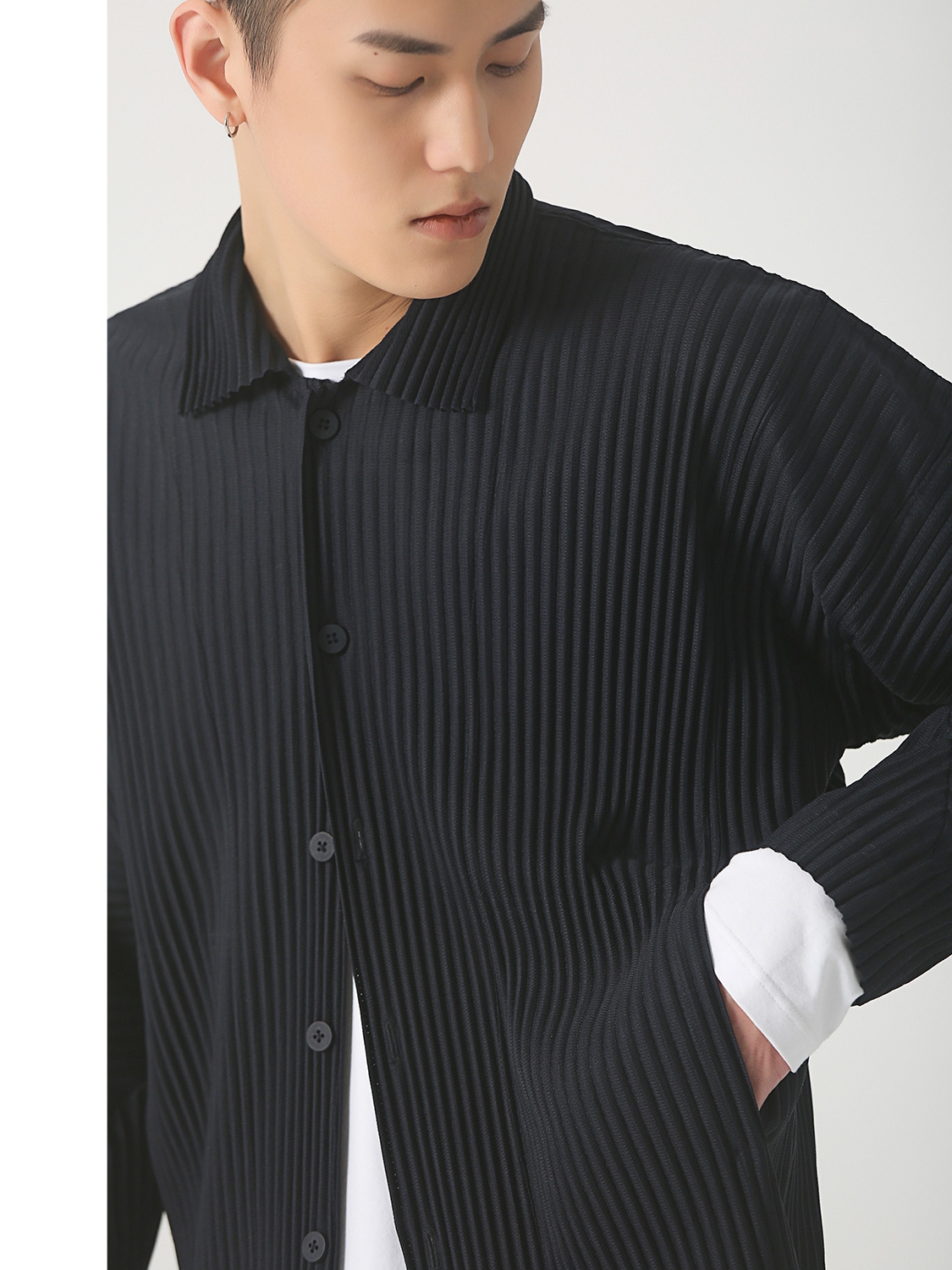 夏日空调随时笼罩,而完美裁制的白色大衬衣,职场秀场感极强!挽一挽中袖,又是不俗套的T恤感!大口袋设计是15年盘点的后现代工业感,潮流尖点。