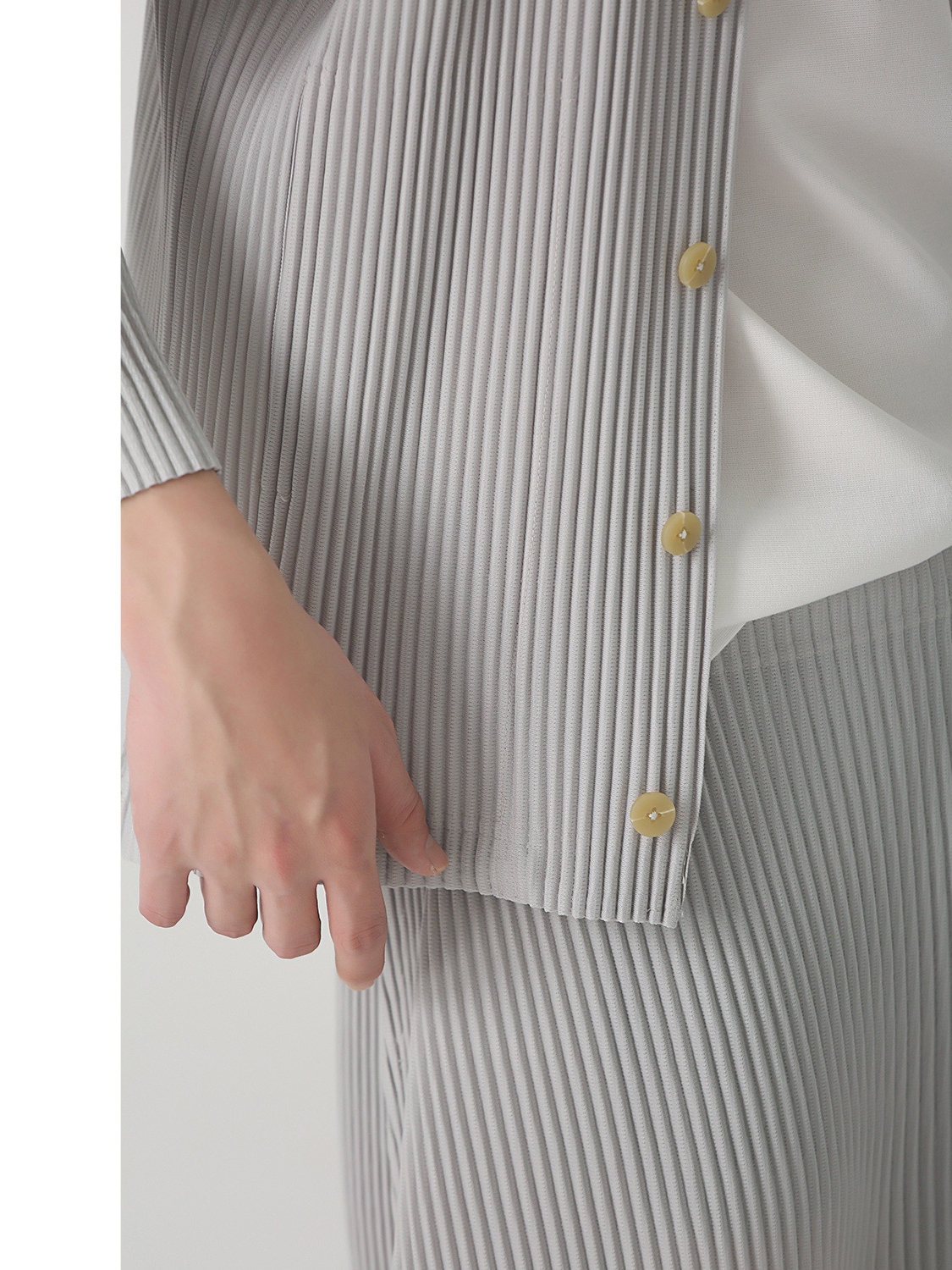 高腰的设计,拉长腿部线条,显瘦效果很好,高腰的版型,很显高挑,修身的剪裁,修饰腿部曲线,上身很有范。