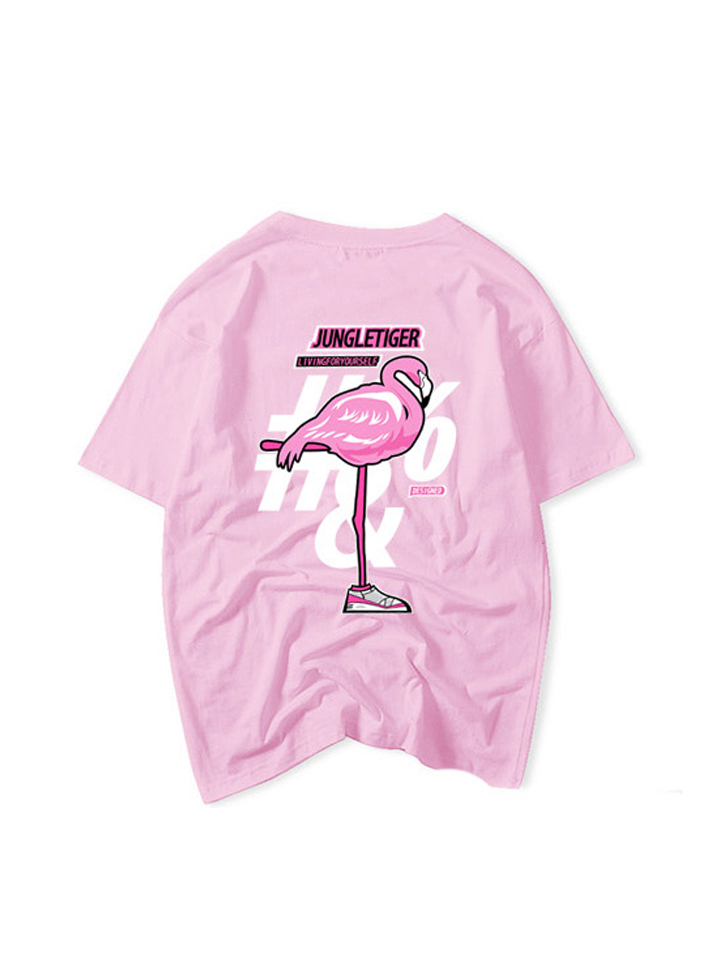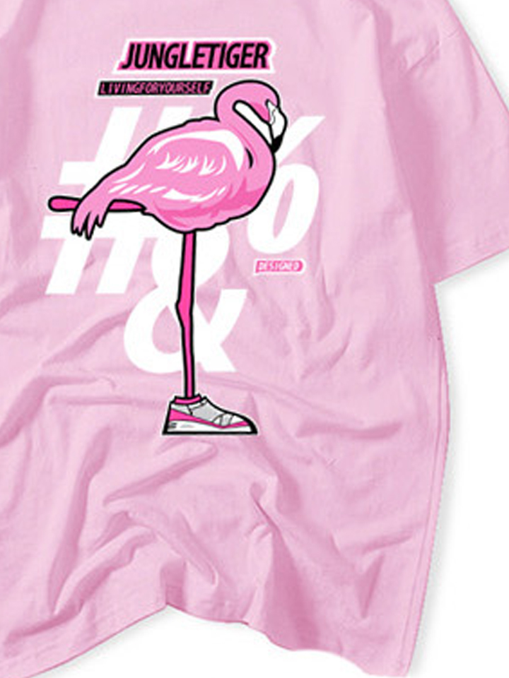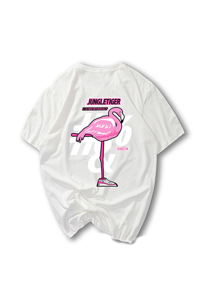 这款T恤衫的颜值超高,基础的糖果色系打底,鲜明亮眼,十分受欢迎,加上后背的火烈鸟印花点缀,个性吸睛,设计感出众,令衣身极具街头潮流韵味。