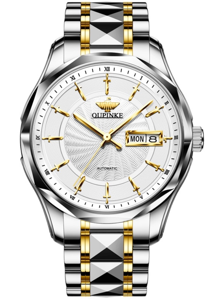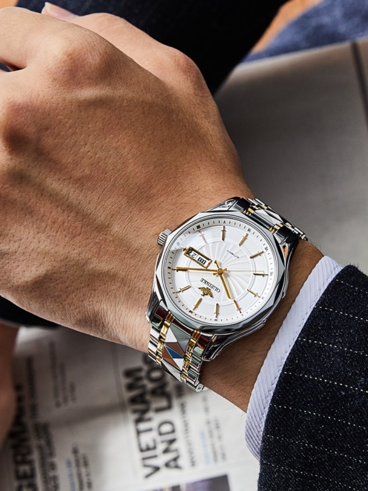 精钢蝴蝶双按扣,坚固耐用易操作,强夜光效果,持久光能存储,让夜晚也能方便准确的查看时间,夜光效果显示非常好。