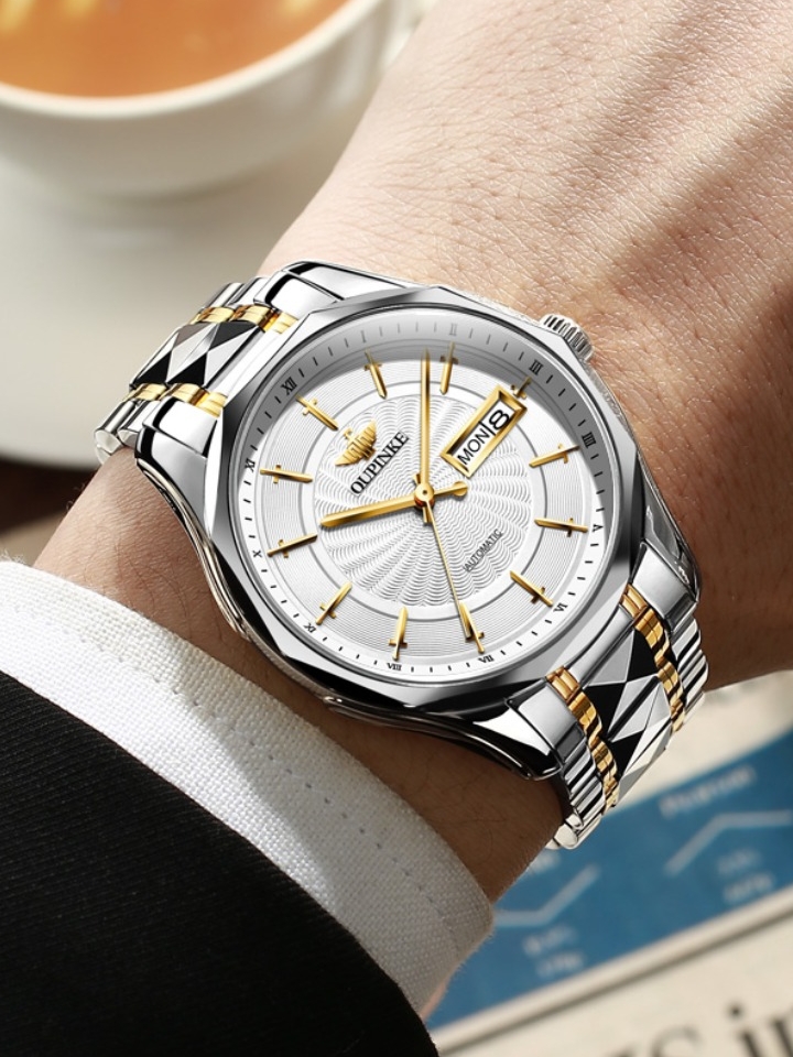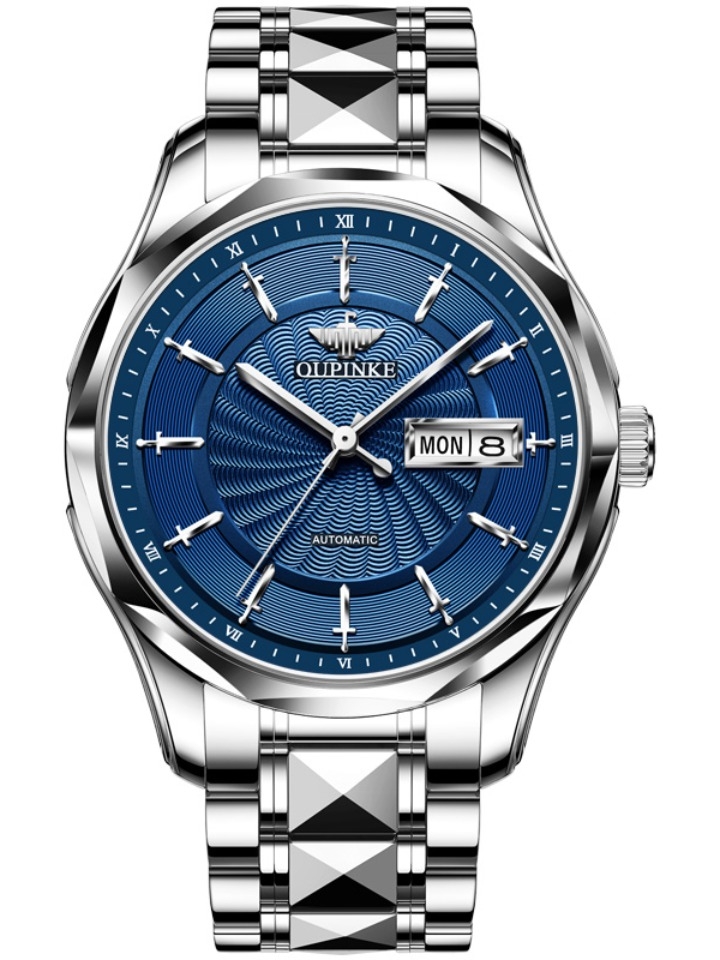 这是一款简约全自动机械男士手表,采用简洁大表盘,搭配复古流行风,皮质表带尽显时尚干练。表镜采用很是耐磨的蓝宝石合成镜面,凸显高质感设计。