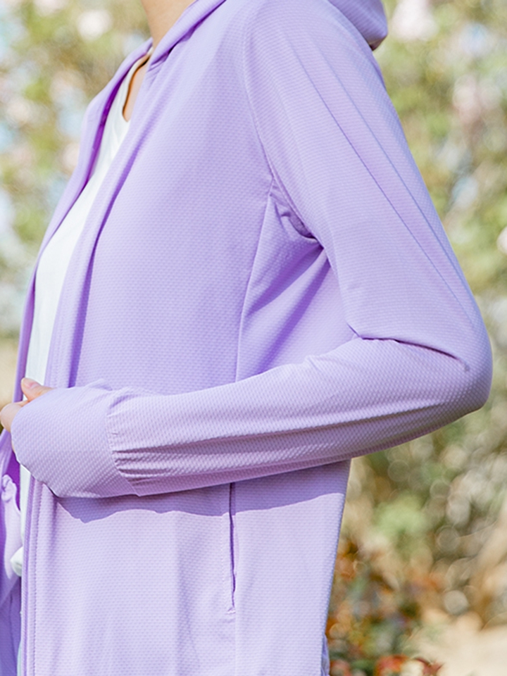 使面料具有较好的透气性和速干性,防晒的同时有效透气,避免闷热,纳米涂层的使用,可以防止雨水的侵袭,高弹力面料搭配贴身裁剪工艺,有效贴合身体,更加舒适。