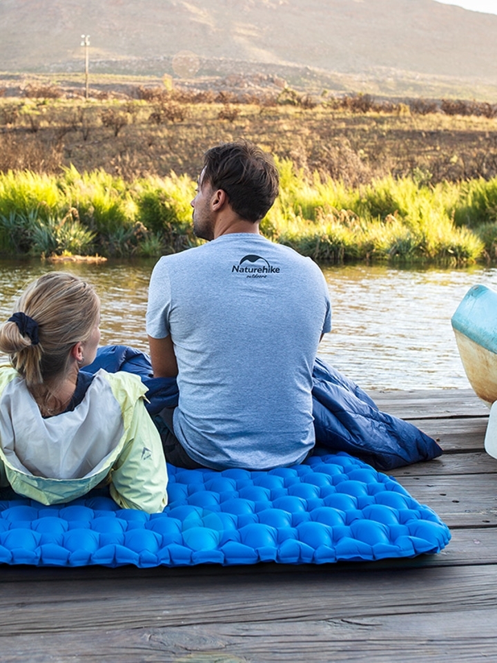 这款充气睡垫去外面野营或者是露营使用时非常方便,充满气之后躺在上面非常的柔软,而且面积很大,可供两个人使用。