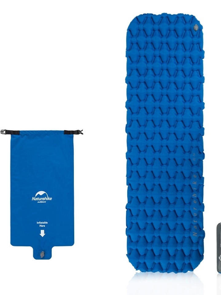 这款充气睡垫的设计亮点在于他可以放气可以充气,放气之后装在收纳袋里所占空间非常小,为出去游玩带来更好的体验。