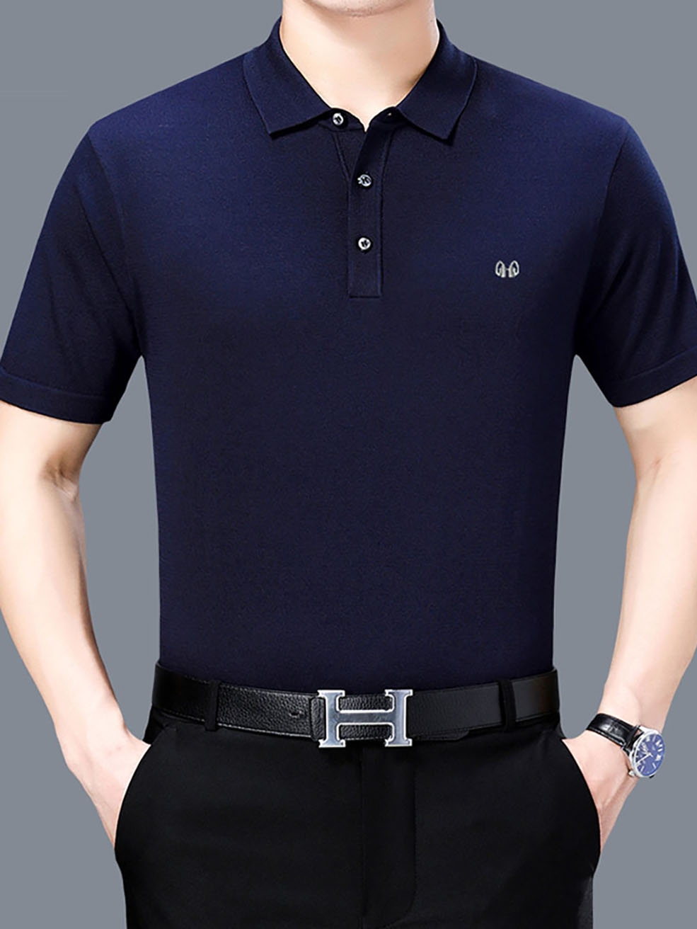 夏装中年男士短袖T恤桑蚕丝体桖条纹款夏季爸爸装POLO衫男款翻领 面料高档 款式新颖 快递快捷 服务热情 售后无忧