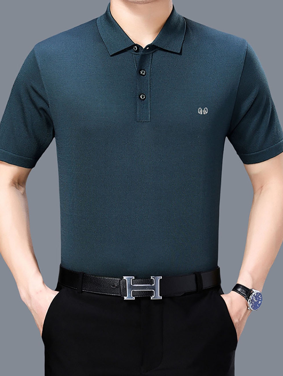 T恤才不是年轻人的专属呢,爸爸们穿上T恤也是很好看,既显得年轻又有活力,夏天穿着还很舒适。但是注意颜色不能太多,像这样的纯色T恤加一些细小的印花就很好。