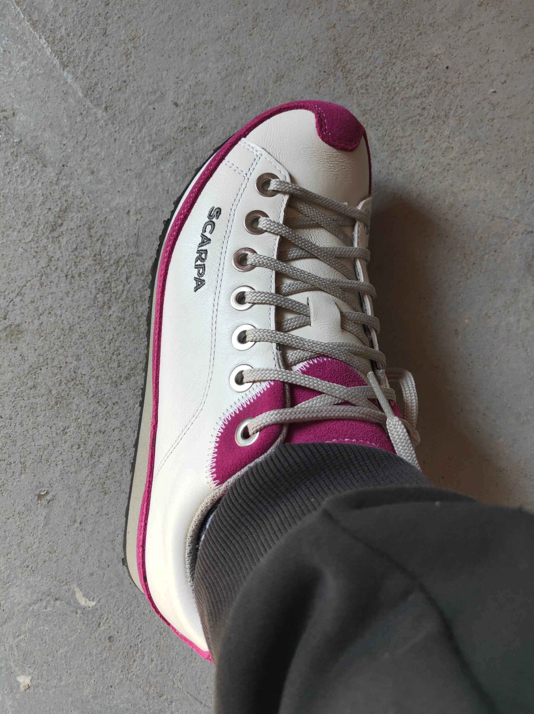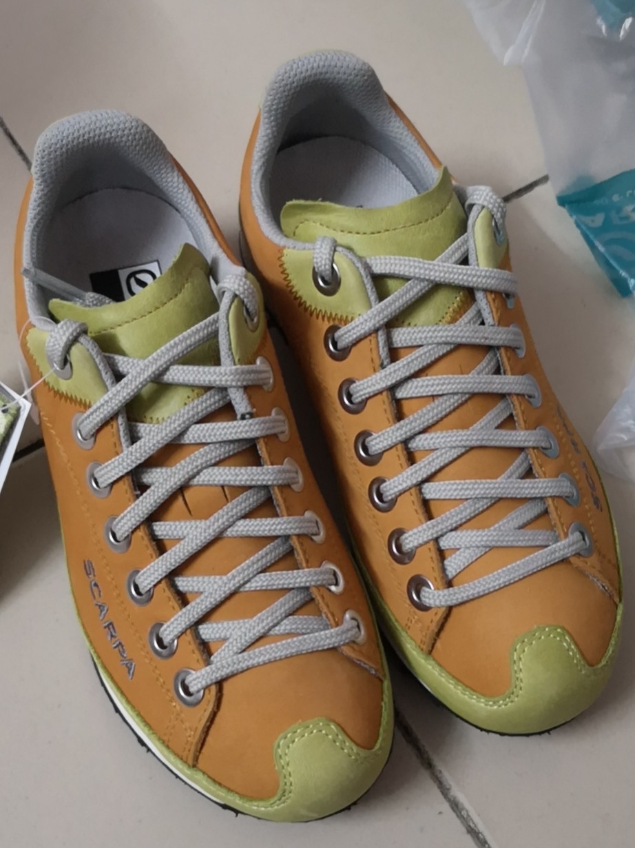 此款为SCARPA Mojito户外休闲鞋,外观简单大方,是户外爱好者日常休闲的不二之选。此鞋专业性极强,鞋子质量轻,让你轻松出行,采用EVA中底可以有效的减震出色的回弹,耐磨橡胶的底面材质,加上黄金V底,集防滑与耐磨一体,低帮鞋口增加了鞋子的包裹性,为户外的专业性能鞋。
