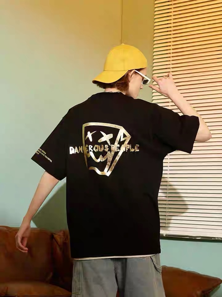 在胸前和后背的位置,加入了烫金纸片人印花点缀,增添炫酷的细节美感,显得尤为精巧又富有时尚感。