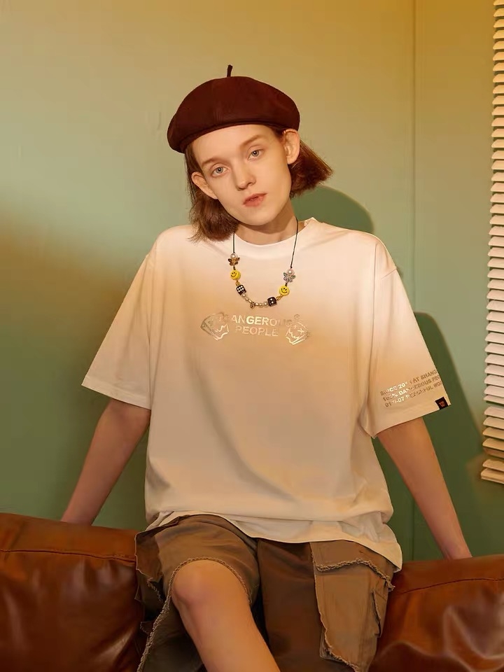 这款t恤是简约的风格,宽松的版型,时尚百搭,胸前的字母印花,很有个性,搭配牛仔裤或者短裤都很好看。
