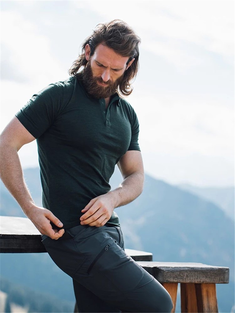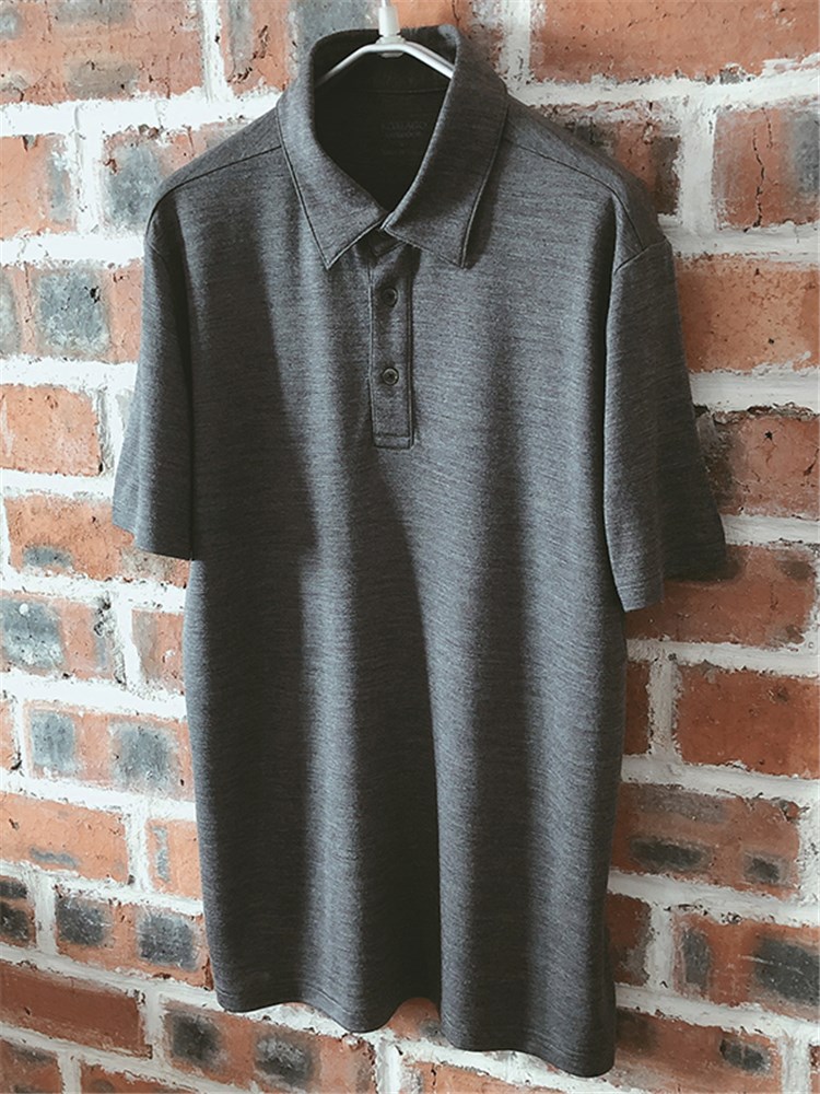 短袖设计,修饰手臂线条,经典纯色T恤,简约百搭,经典纯色设计,时尚百搭,经典翻领设计,修饰脸型,简约款式,休闲时尚百搭,丝滑面料,手感顺滑细腻,100%羊毛,柔软舒适。