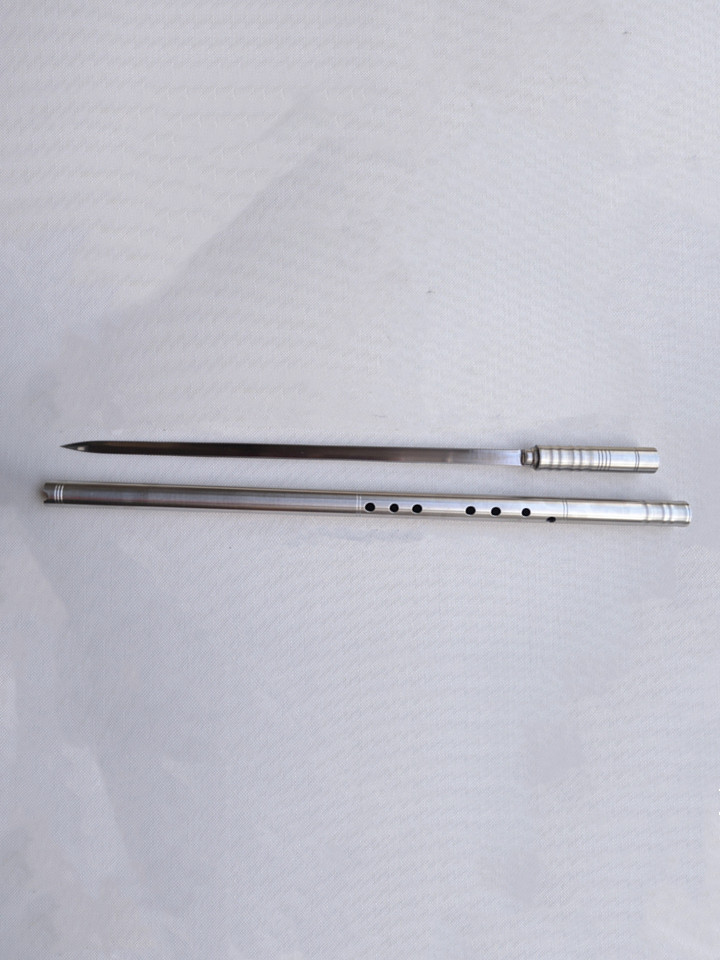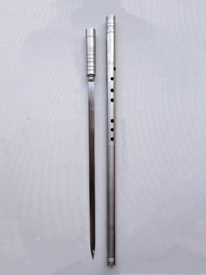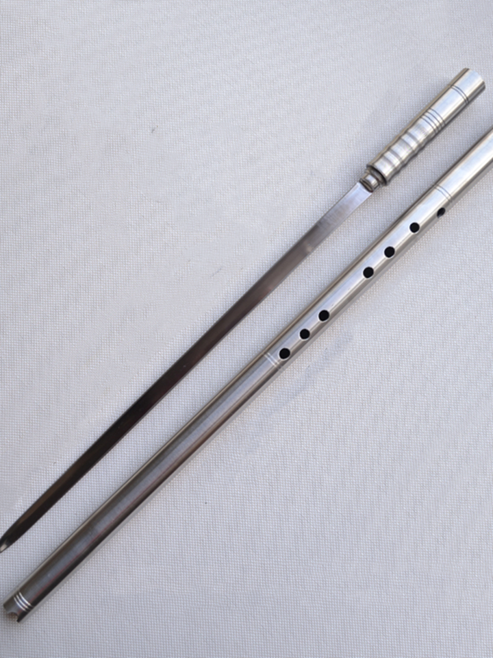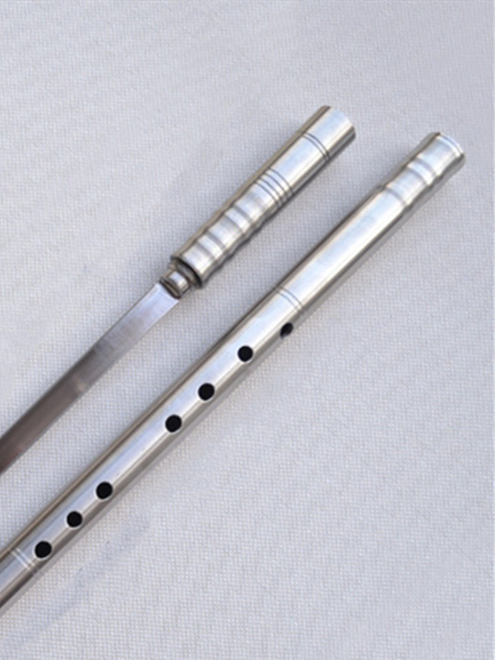 这款箫剑集箫和剑于一体,既能演奏又能在紧急时刻用作防身武器,它采用纯钛材质打造而成,带有金属独特的光泽,且手感舒适,耐磨耐腐蚀,结实耐用。