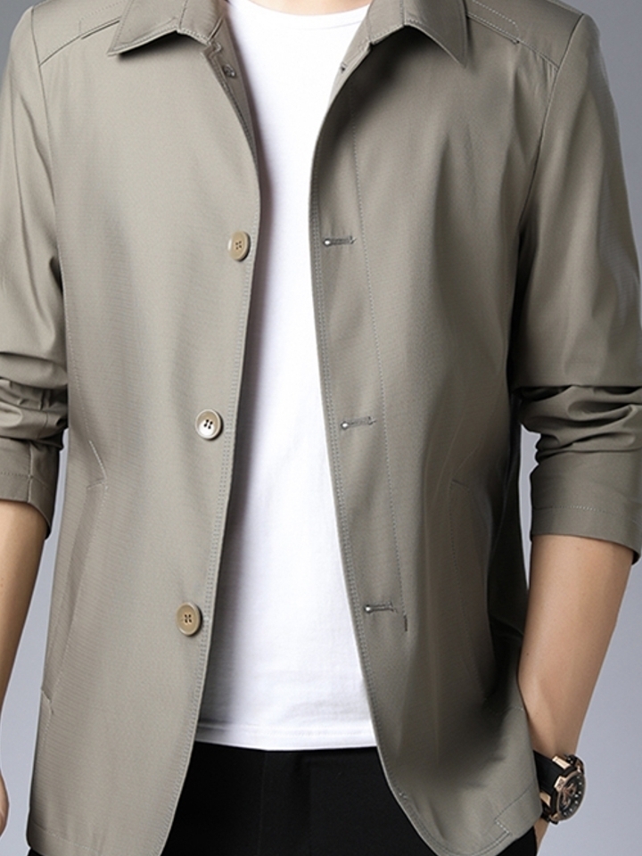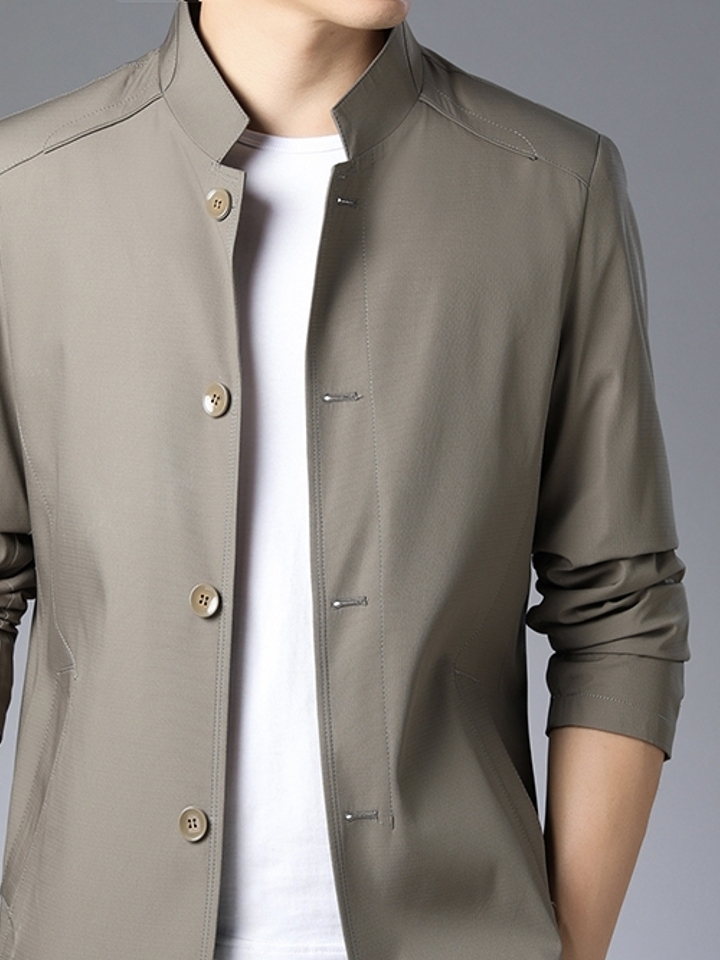 一款很有型的夹克,肩部的设计,整齐自然 ,坚挺有型,穿着时尚又舒适。小立领的领口,干净利落,潮流时尚,穿着挺拔帅气。整体简约的版型,时尚百搭,展现男性不俗的气质,成熟稳重,彰显随性不羁的风范。
