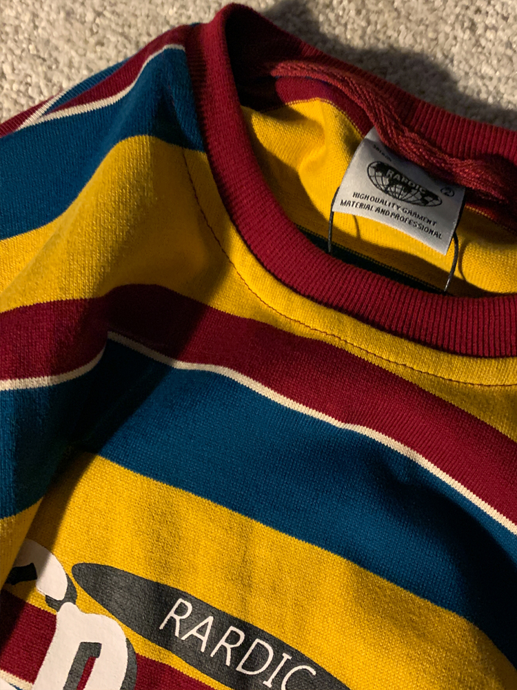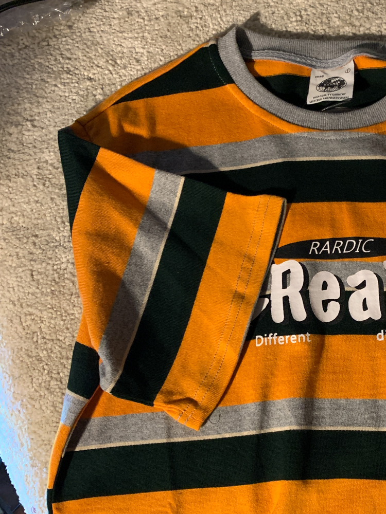 经典的圆领设计,时尚百搭简单大方。袖口采用包边设计,能更好地防止毛边脱线。经典黑白条纹,凸显清新潮男范儿。作为内搭穿着也非常适合的一款条纹宽松短袖T恤,灰色非常凸显气质又简洁百搭,宽松的版型穿着也非常舒适自在,条纹印花更是增加了吸睛效果,质地也非常柔软。