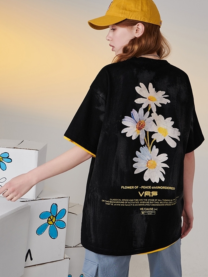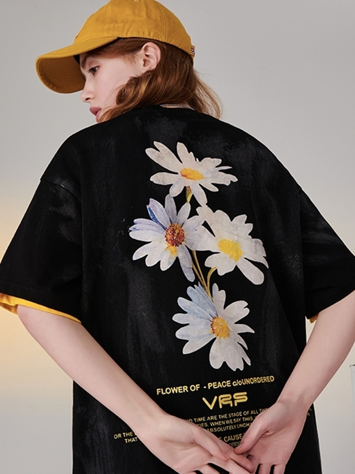 摒弃一切繁琐细节的简约纯色打底设计,透出浓厚的高街街头主义,前面的细节印花,带来时尚活力气息,后面的印花尽显艺术气息,后背处的印花与前面的相呼应。