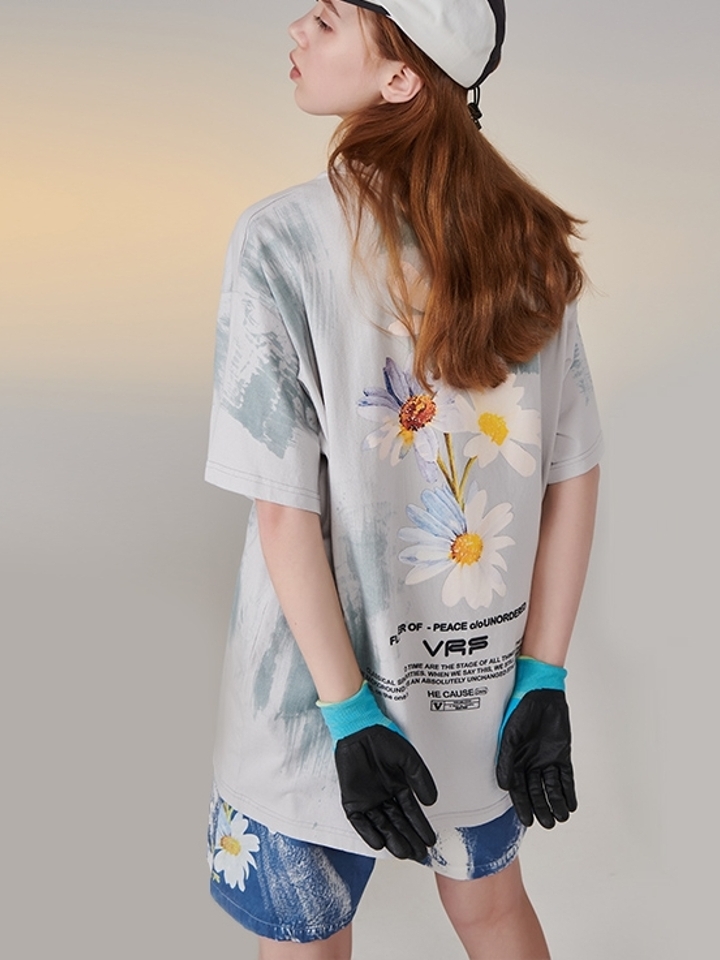 大方的圆领,优雅得体,清新的邹菊印花点缀衣身,起到很好的吸睛效果,显得甜美减龄,宽松的版型,可以很轻松的驾驭出显瘦的效果,无论搭配裤装还是裙装都很好看。