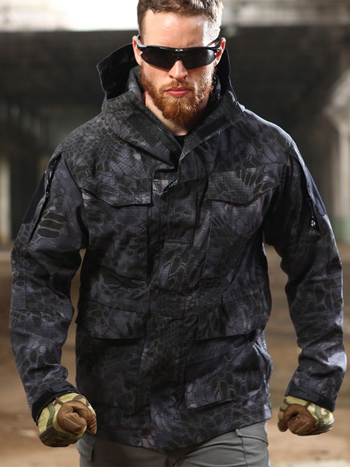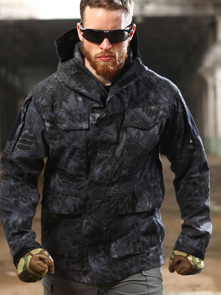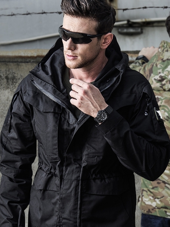 此次设计的战术冲锋衣,帅气有型,时尚百搭。Gore-Tex科技面料衣身,防刮防泼水,质量出众。一体式的连帽设计,休闲范十足,可随意进行佩戴,转换不同风格。腰部的松紧设计,能够避免臃肿,凸显矫健身姿。