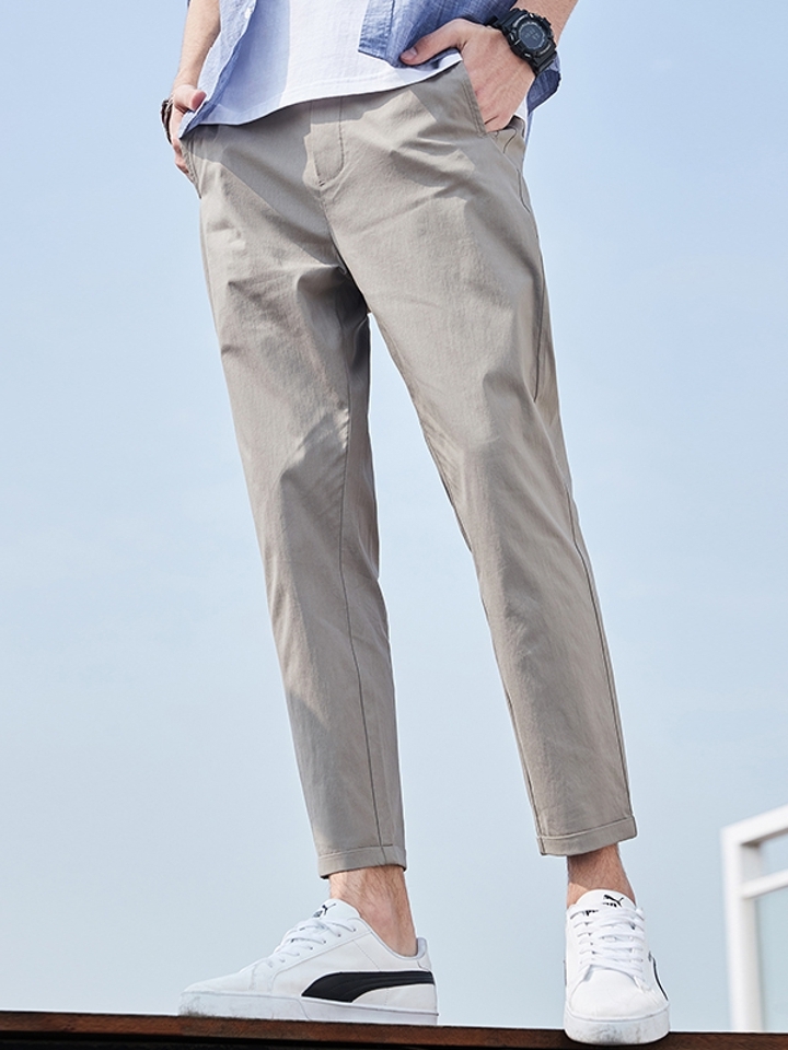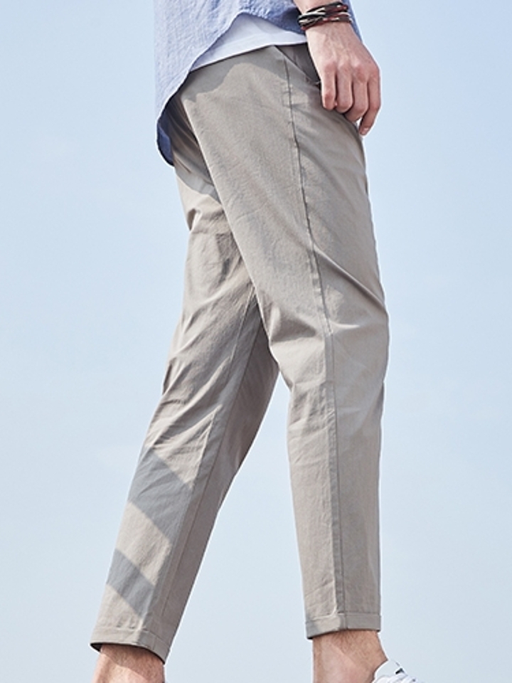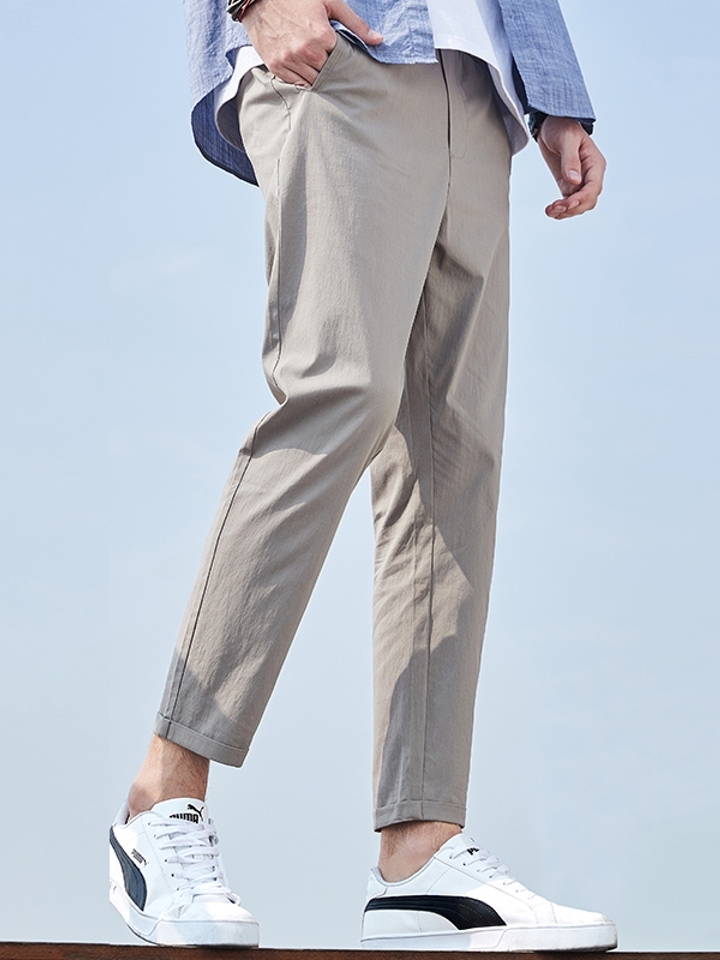 休闲裤采用冰丝与亚麻面料打造,穿着起来舒适透气不闷热。延续经典的宽松休闲裤版型,九分裤长的选择能够修饰腿部比例。