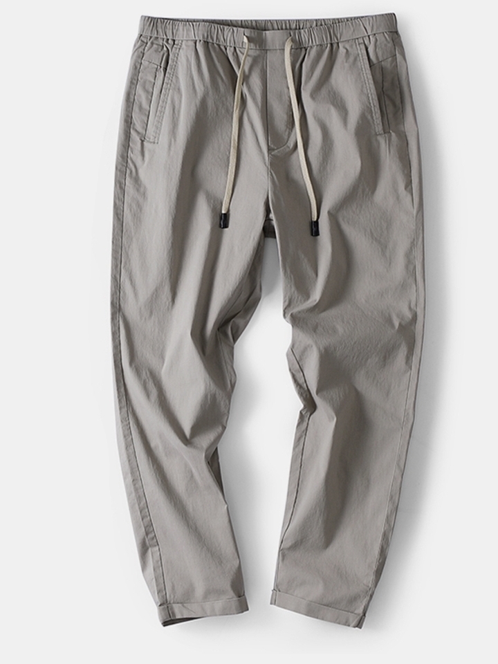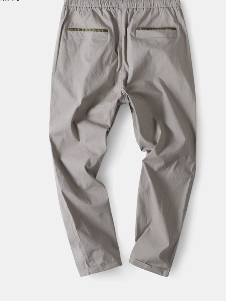 贴心的松紧腰设计,对腰身的包容度高,可自由收缩调节适合的松紧度,令穿着更加舒适自在。从上至下呈直线形的流畅设计,结合恰到好处的九分长度,版型简单之余更具休闲风范。