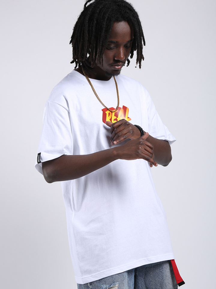 这款T恤的版型相对宽松,独特的小领口设计,别致个性,搭配自然的落肩款式,呈现舒适自由的街头嘻哈风格。