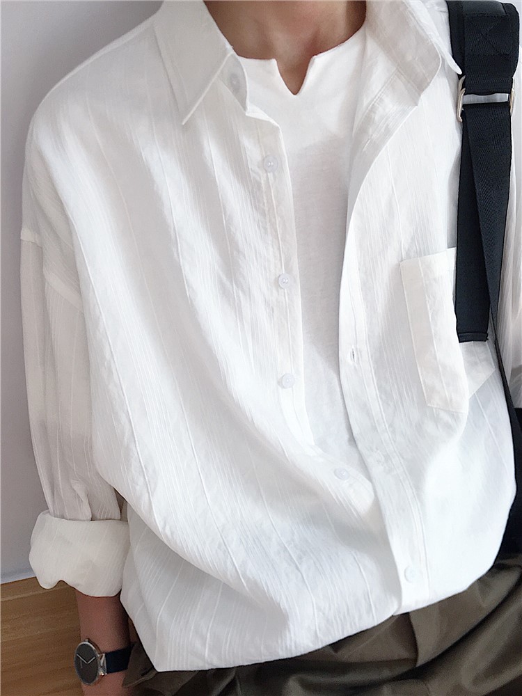 基础款式,适合各种场合,白色基础款,百搭不过时,经典复古风格,时尚百搭,宽松衬衣版型,修身显瘦,简约款式,休闲时尚百搭,纯色设计,日系简约风格。