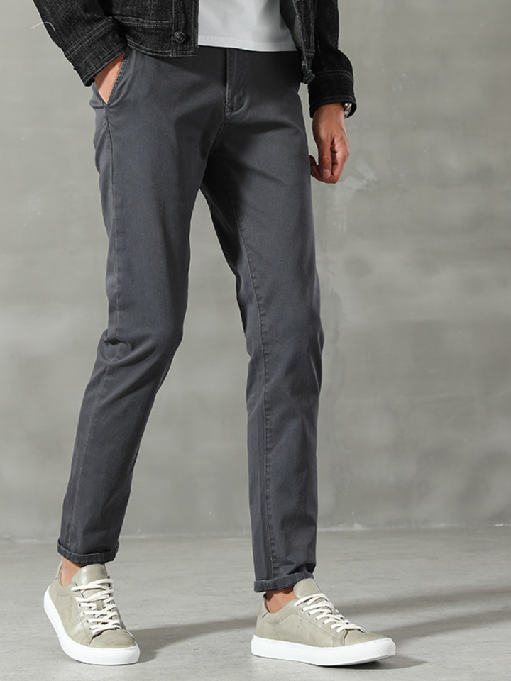 修身式的裤身造型,可以贴合着腿部的曲线,营造出利落的时尚感。极简的裤身颜色,演绎出百搭感。
