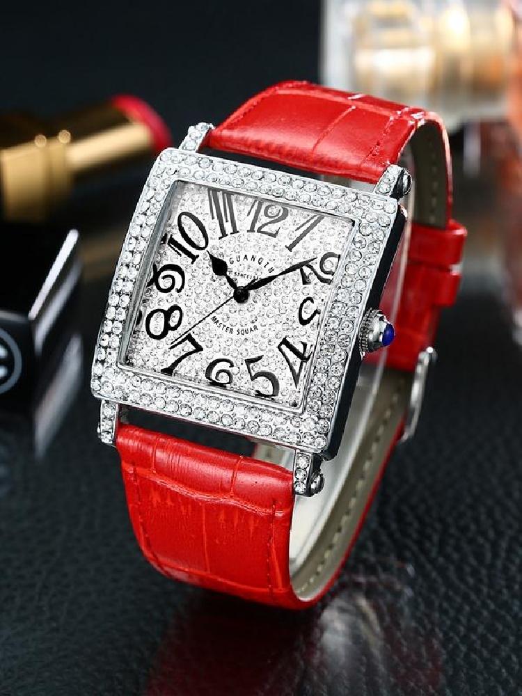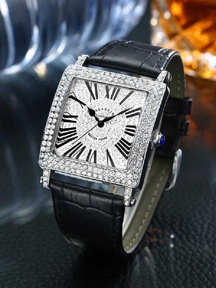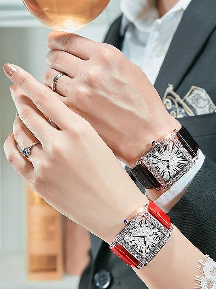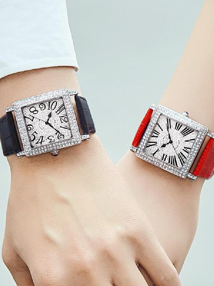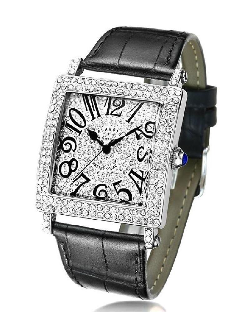 用满满的水钻将大表盘镶嵌起来,彰显奢华的时尚,晶莹剔透的水晶搭配银色的外观,整体散发着奢华的光芒,表盘内采用几何形状设计,彰显摩登时尚范,防水的特质让整个石英表更加完美。