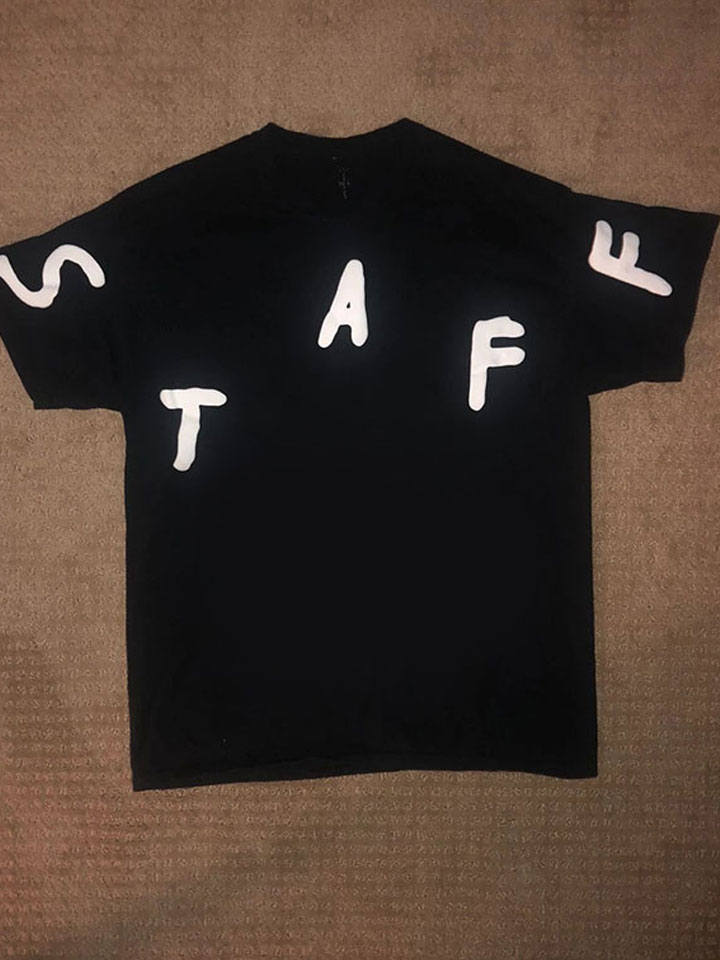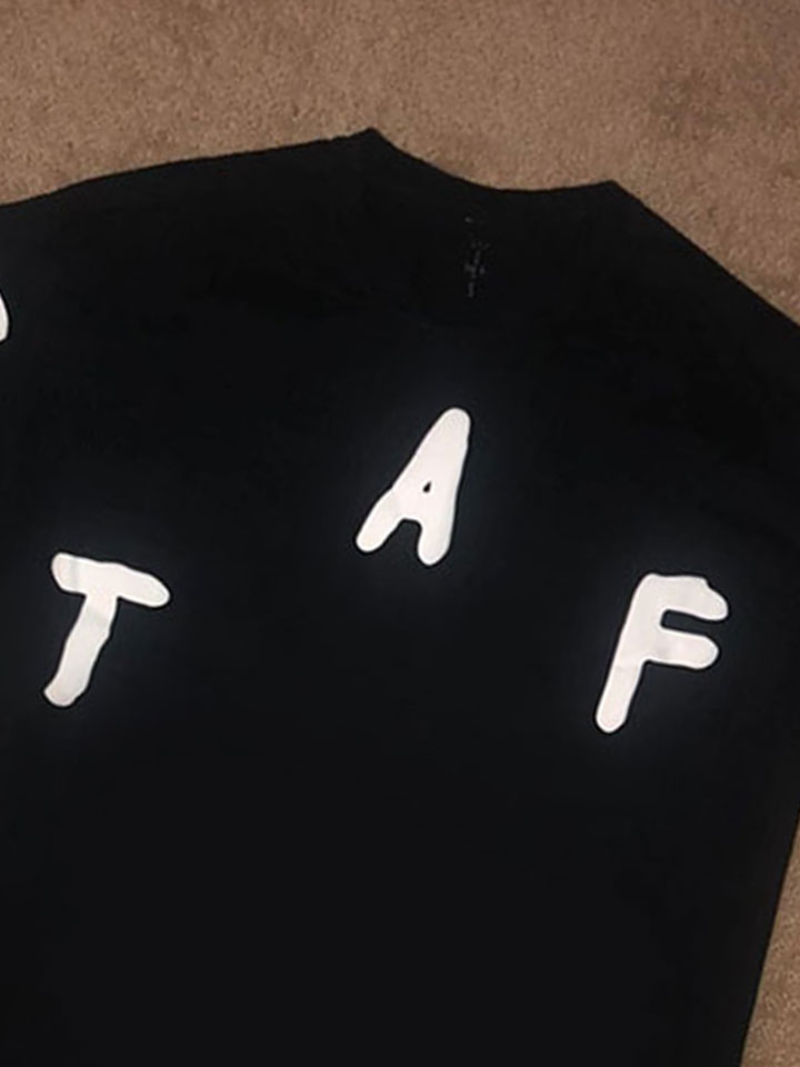 衣身采用创意的英文字母点缀,无规则性的散落,营造满满的吸睛效果。白色的设计在黑色的映衬下也格外的显眼。