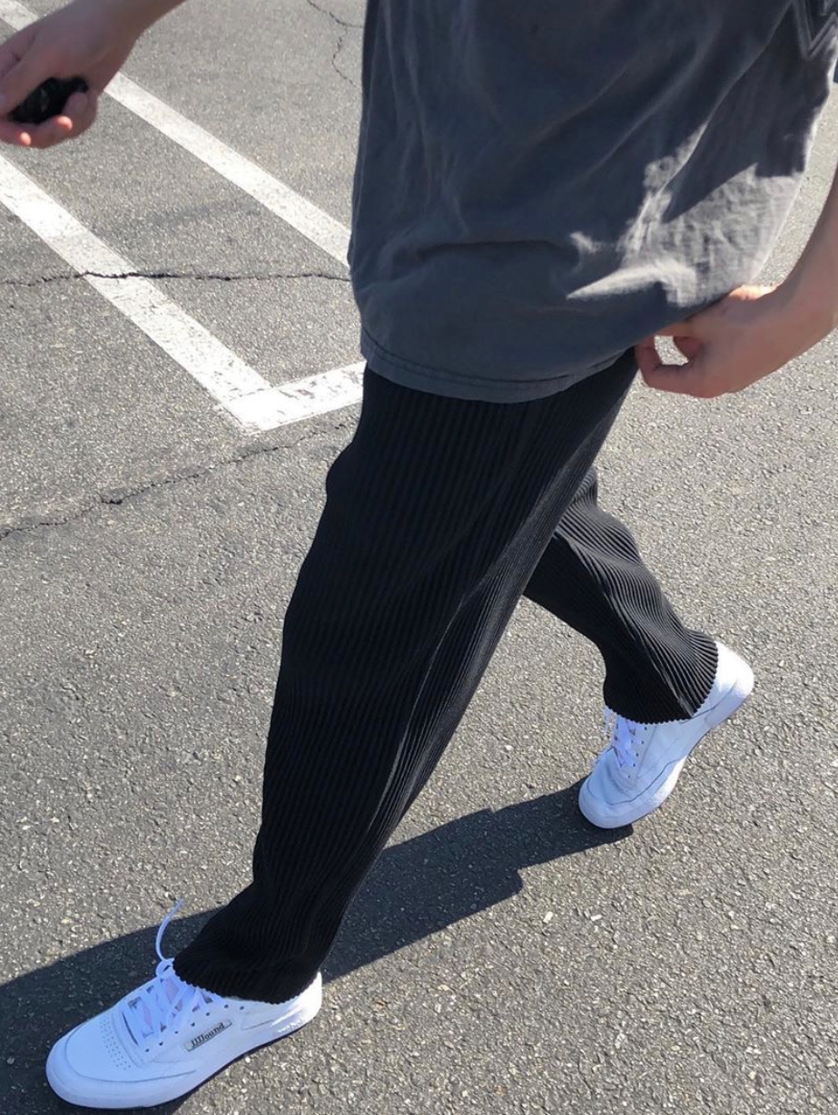 休闲宽松哈伦褶皱长裤,舒适又带点街头感,小腿微微收紧修身腿型,上身后超显瘦,凸显男性潮流不羁的个性。