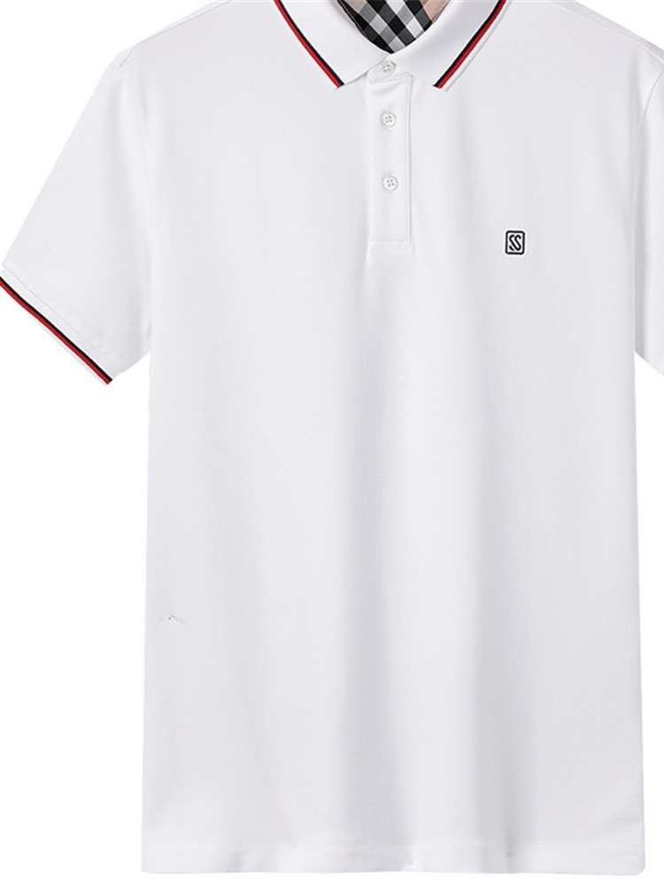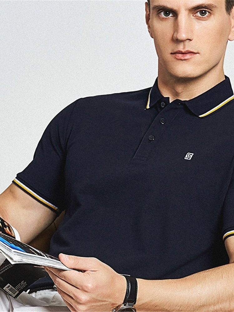 男士短袖T恤简约韩范,整体以白色为主,辅以深蓝色边缘,诠释出层次美感,时尚又大方,圆领与袖口一脉相承,成功衬托男士的优雅弧度,美观不失细腻,修身版型做工,更是诠释出完美男士的风姿魅力。