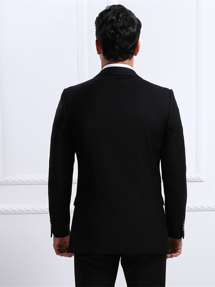 简洁随性的黑色西服套装,彰显经典不衰的时尚风格,上下身都是修身的款式,手摸起来有种柔软的肉感弹性,穿上身平整挺括,一点不拖沓,显得内敛干练,搭配黑色皮鞋超有气质!