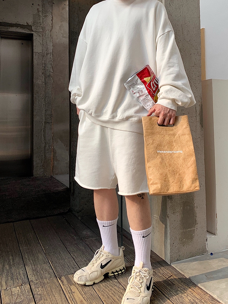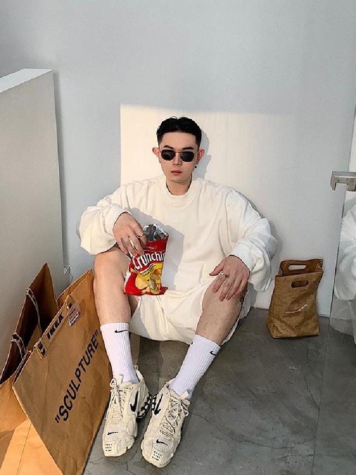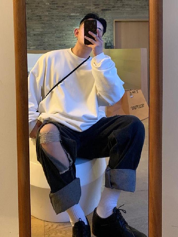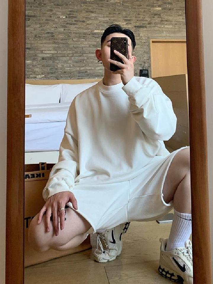 基础款宽松圆领卫衣,传承着休闲的风格,清纯的白色,打造干干净净大男孩的形象。oversize 廓形裁剪,营造慵懒街头风。